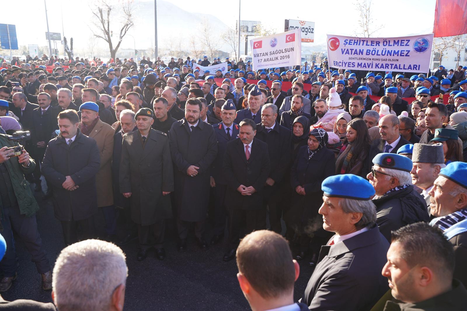 Anma programına AK Parti Kayseri İl Başkanı Hüseyin Okandan, teşkilat mensuplarıyla birlikte katılırken, Kayseri Valisi Gökmen Çiçek ve il protokolü de törende hazır bulundu. Programda Kur’an-ı Kerim tilaveti okunurken, şehitler için dualar edildi.Törende yapılan konuşmalarda, Türkiye’nin birlik ve beraberliğine kasteden terör örgütleri bir kez daha lanetlendi. Şehitlerin fedakârlıklarının asla unutulmayacağı vurgulanırken, gazilere duyulan minnet duygusu dile getirildi.