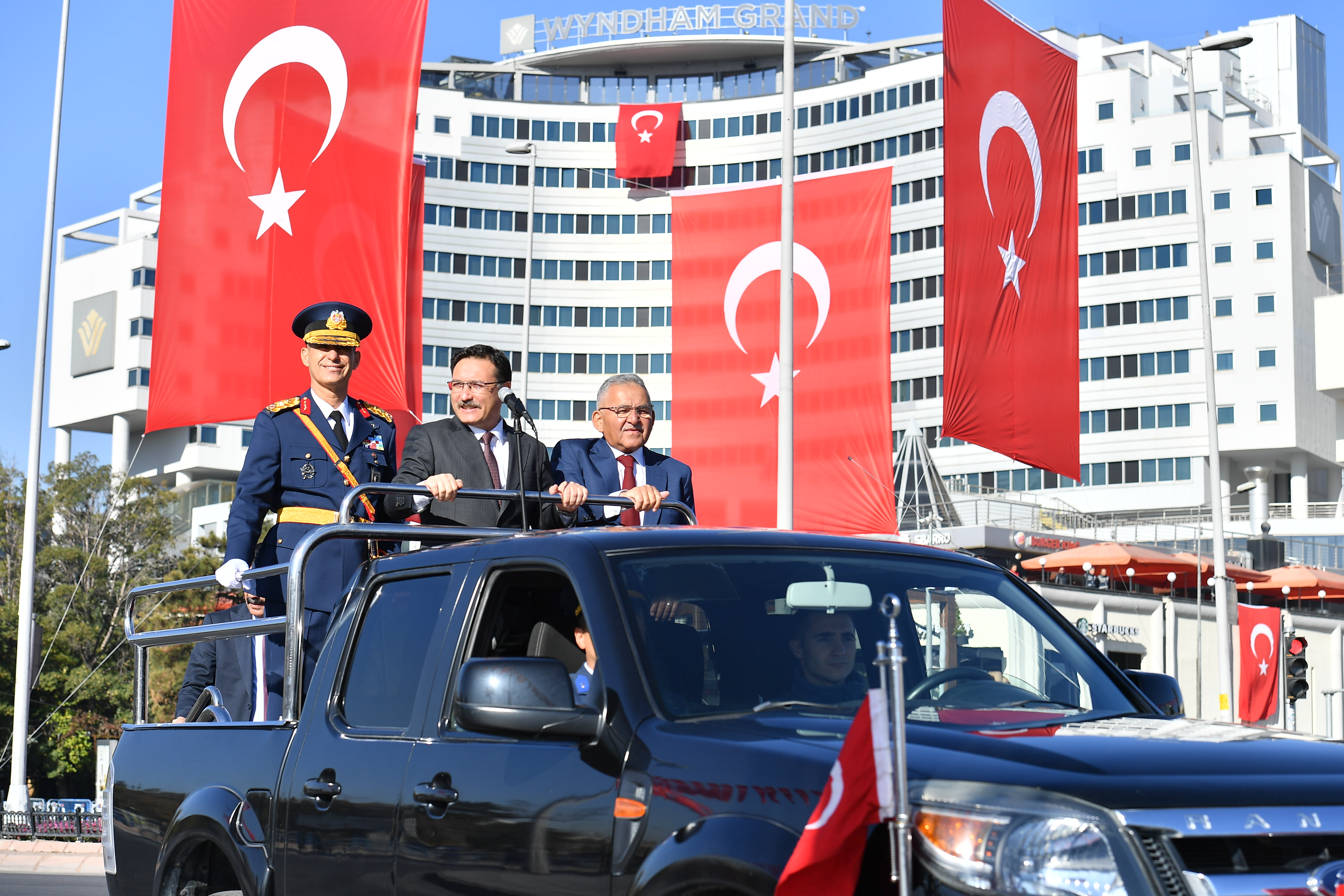 29 Ekim Cumhuriyet Bayramı, Kayseri'de büyük bir coşku ve gururla kutlandı. Cumhuriyet Meydanı'nda gerçekleştirilen törenlere, Kayseri Valisi Gökmen Çiçek, Garnizon Komutanı Hava Pilot Tümgeneral Kadircan Kottaş ve Büyükşehir Belediye Başkanı Dr. Memduh Büyükkılıç katıldı. Törende, protokol üyeleri tebrikat töreninde bir araya gelerek bayramlaştı.