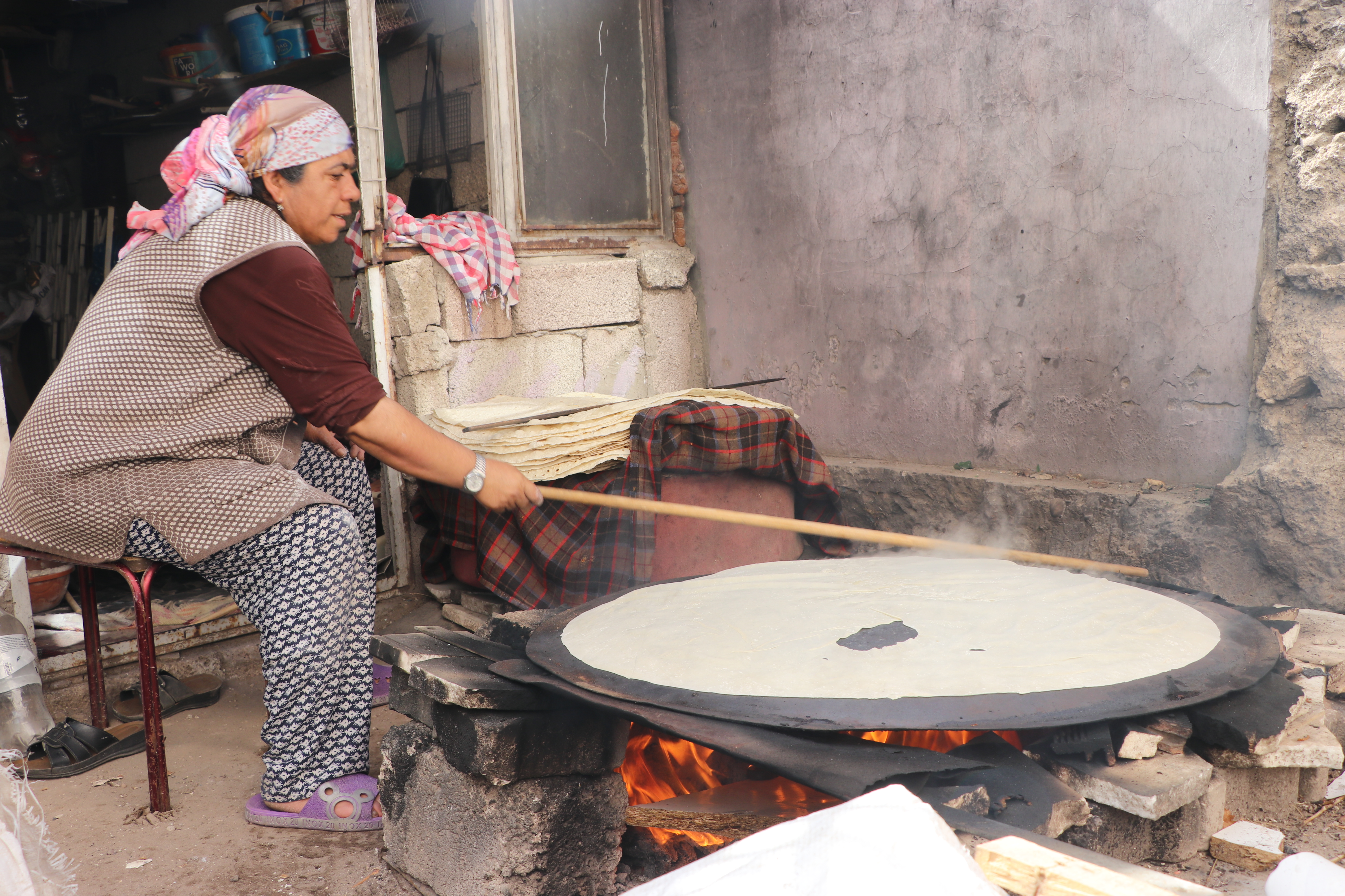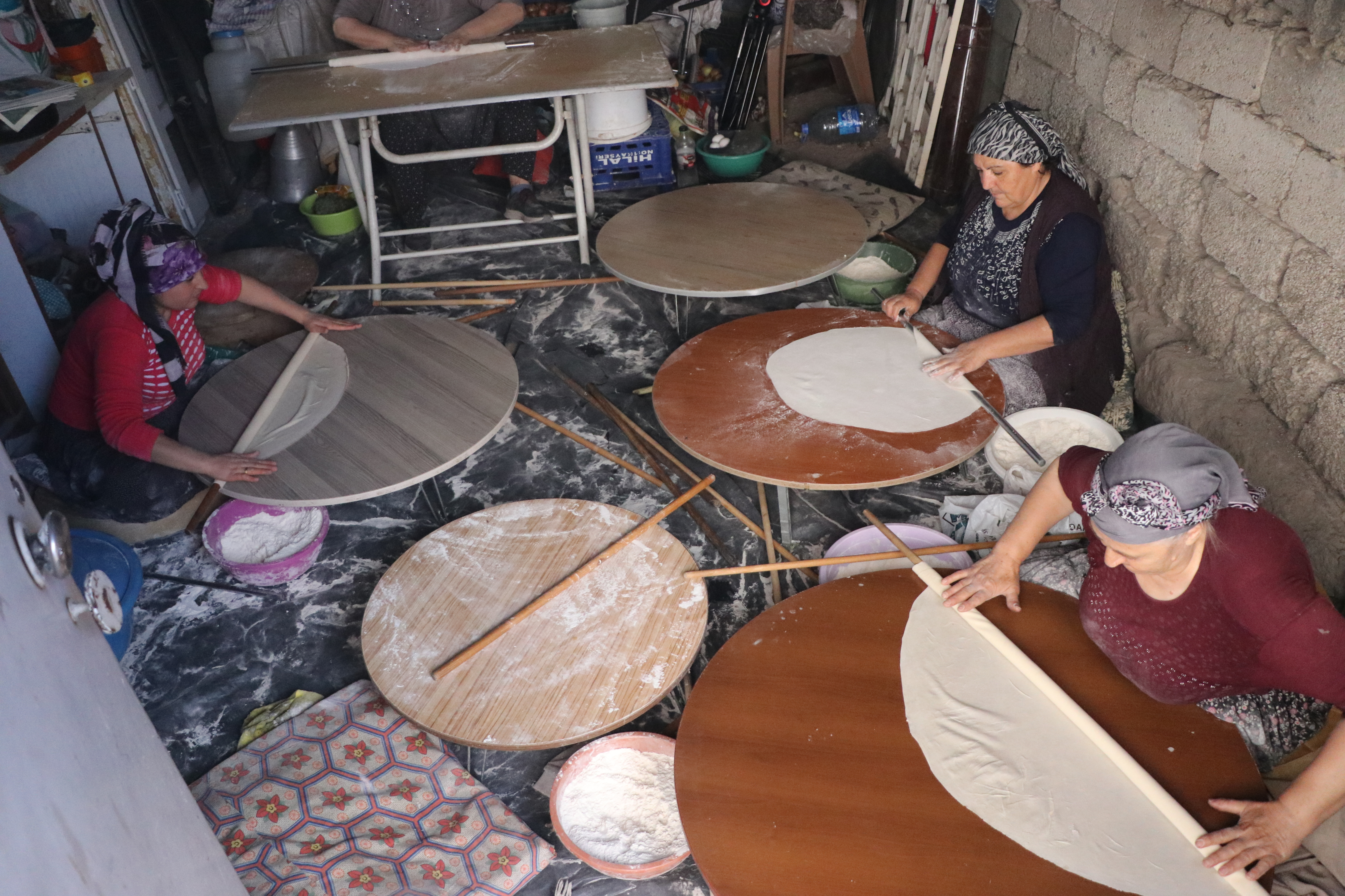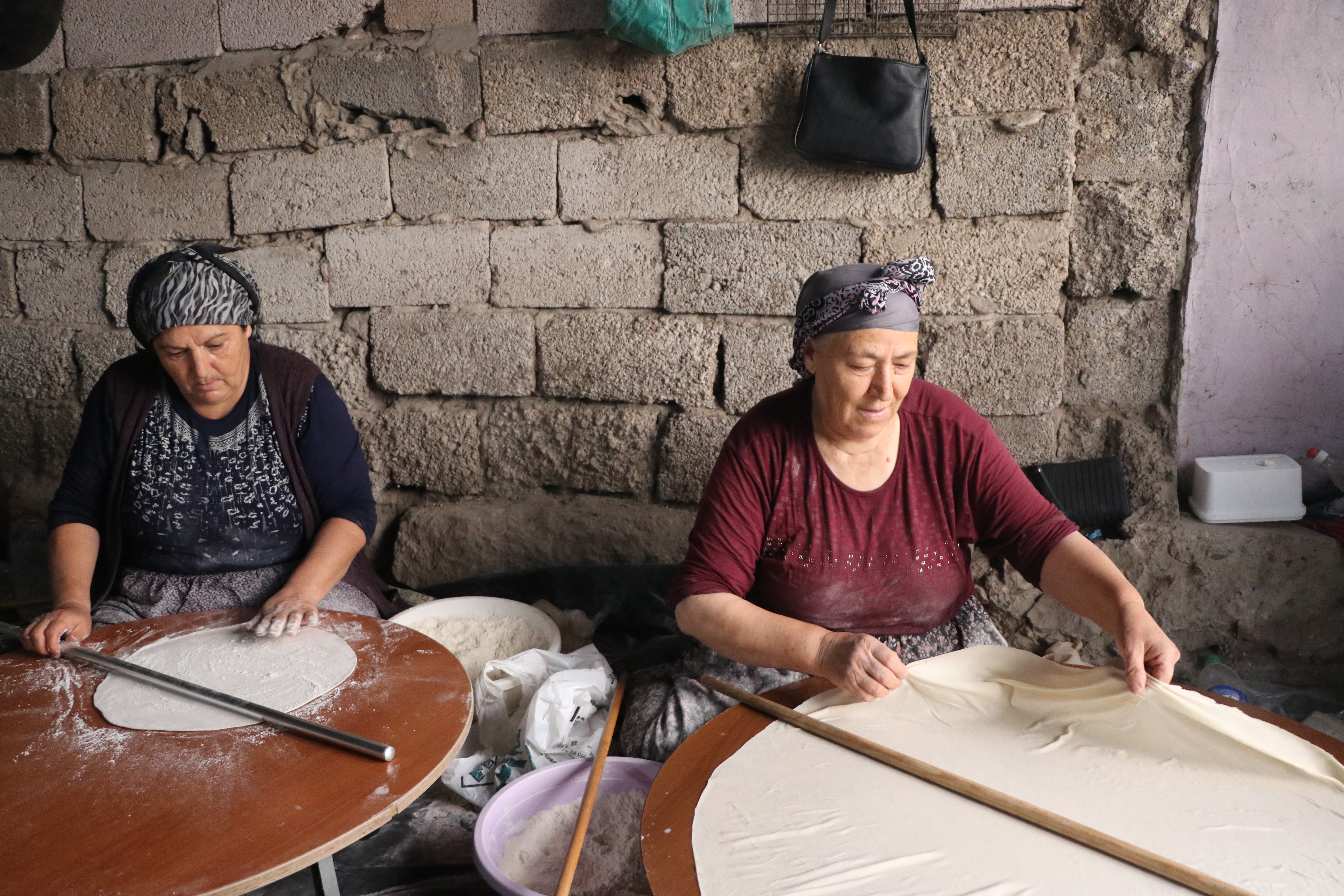 Ekim ayının gelmesiyle birlikte mahalledeki kadınlar, kış için yufka ekmeği hazırlıklarına başlıyor.