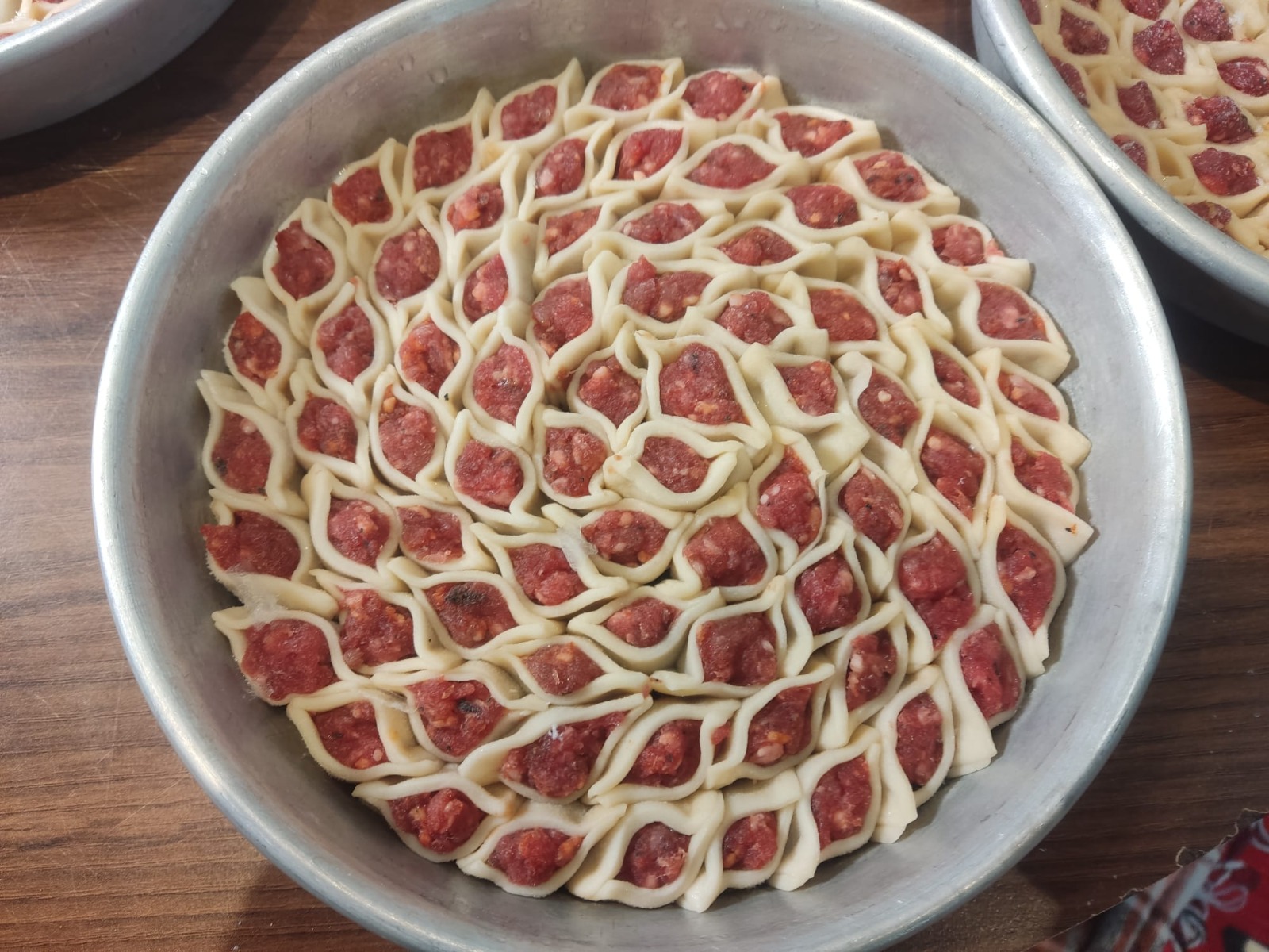 Hazırlık sürecinde küçük hamur parçalarının içine iç harç yerleştiriliyor ve her biri özenle kapatılıyor. Çiçek formunu andıran mantılar, tepsiye tek tek dizilerek estetik bir görünüm oluşturuyor. Fırında ağır ağır pişirilen mantılar, altın sarısı rengini aldıktan sonra servise hazır hale geliyor.