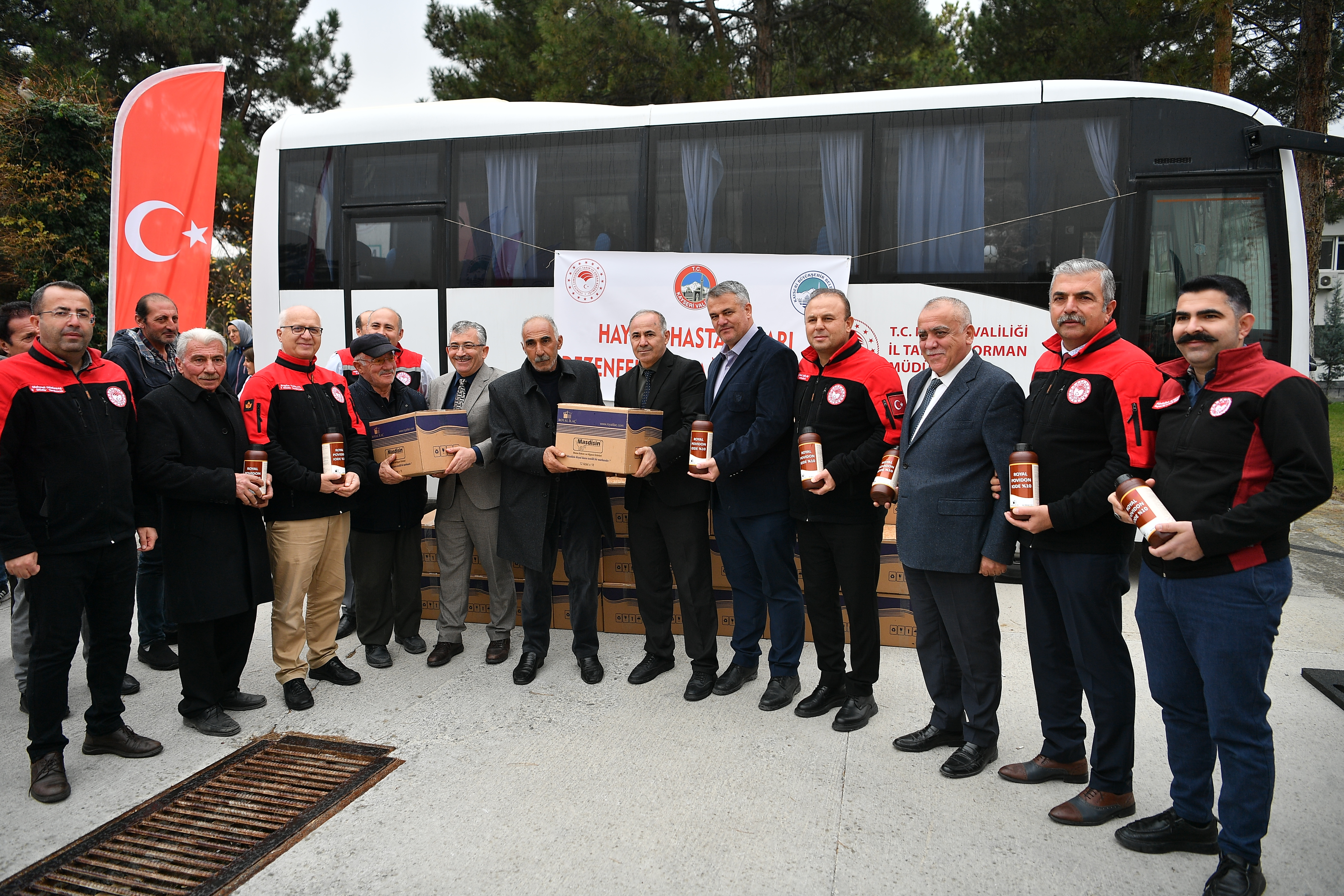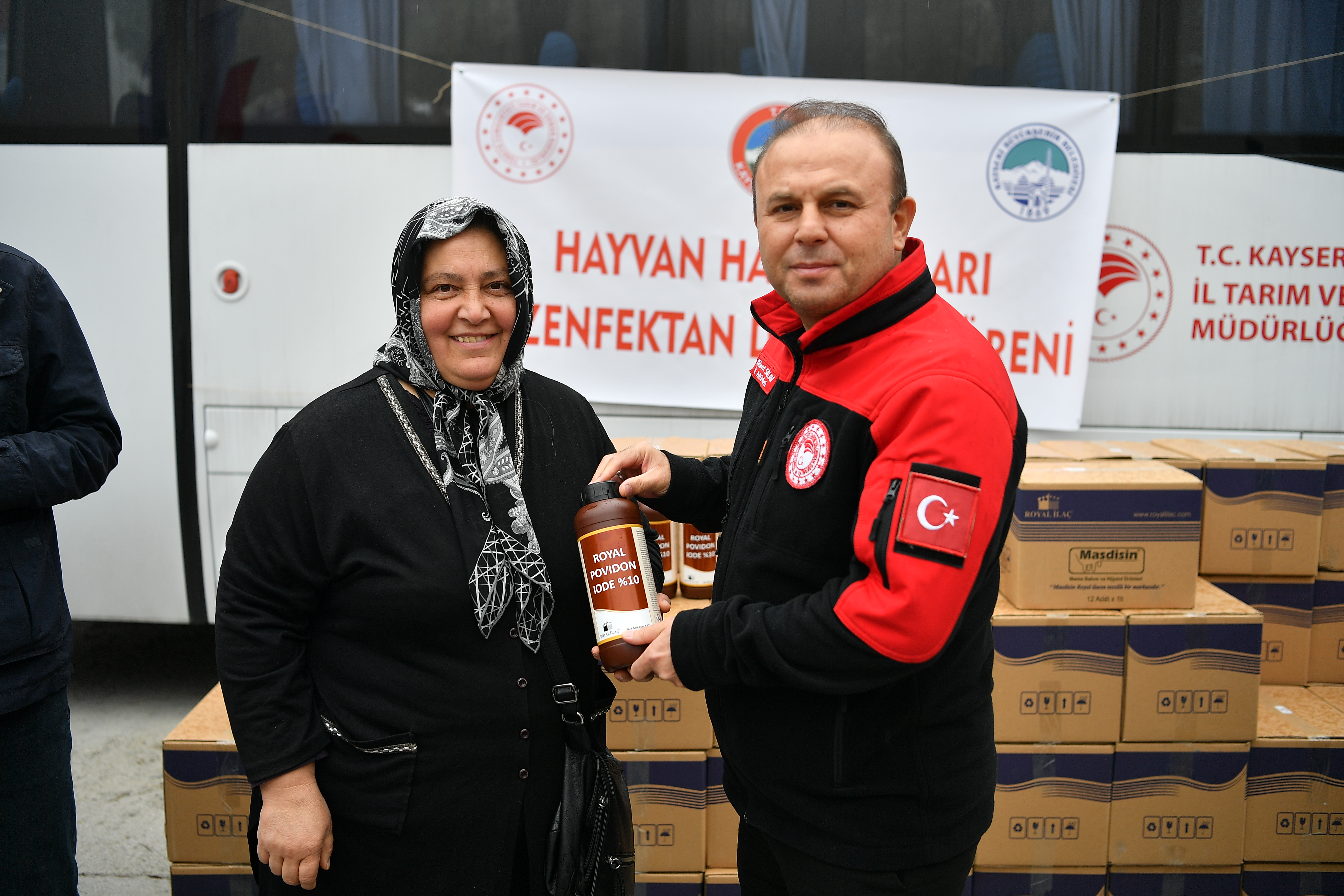 Kayseri Valiliği ve İl Tarım ve Orman Müdürlüğü iş birliğiyle gerçekleştirilen dezenfektan dağıtımı, İl Tarım ve Orman Müdürlüğü önünde düzenlenen törenle üreticilere teslim edildi. Programa Kayseri Tarım ve Orman İl Müdürü Bülent Saklav, Büyükşehir Belediyesi Genel Sekreter Yardımcısı Mustafa Türkmen, Veterinerlik Hizmetleri Daire Başkanı Duran Safrantı, Kırsal Hizmetler Daire Başkanı Yasin Harmancı ve çok sayıda besici katıldı.