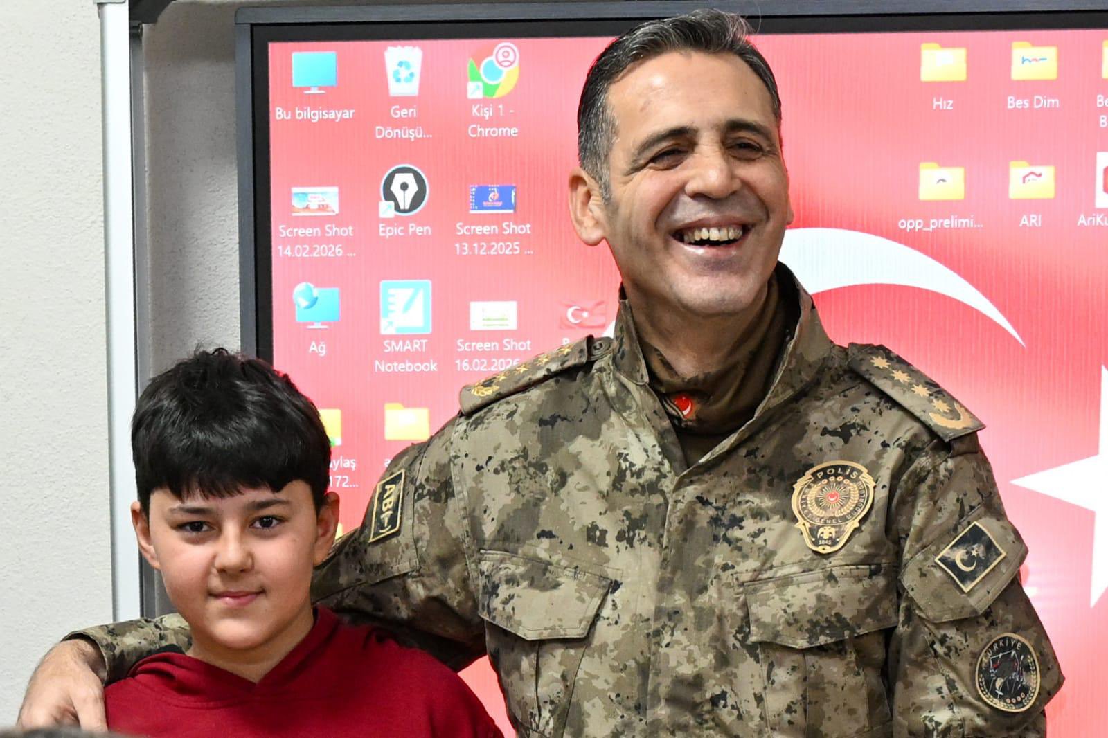 İl Emniyet Müdürü Atanur Aydın, okul ziyaretinde öğrencilerle yakından ilgilenerek bir süre sohbet etti. Şehit polis memurunun oğlu Eyüp Eymen Akdere’ye eğitim hayatında başarılar dileyen Aydın, devlet olarak her zaman şehit ailelerinin yanında olduklarını vurguladı.