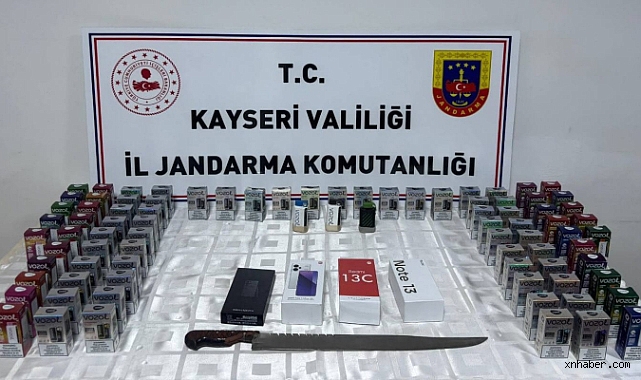 Kayseri İl Jandarma Komutanlığı ekipleri, Kocasinan ilçesinde düzenledikleri operasyonda piyasa değeri yaklaşık 200 bin TL olan kaçak elektronik sigara, cep telefonu ve bir pala ele geçirdi. Operasyonda iki şüpheli gözaltına alınırken, olayla ilgili soruşturma başlatıldı.