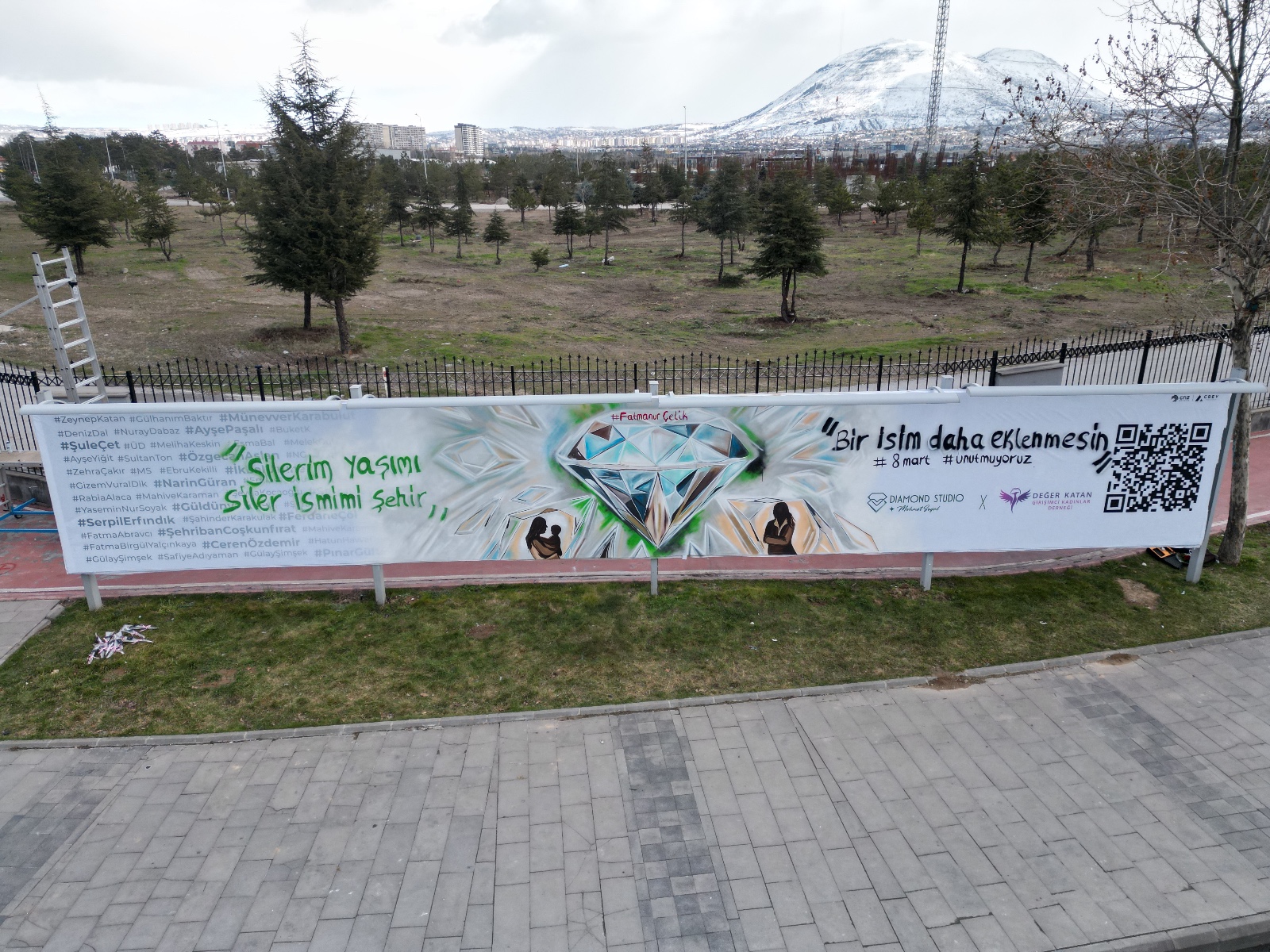 Diamond Studio Mehmet Soyal tarafından hazırlanan ve Değer Katan Girişimci Kadınlar Derneği’ne hediye edilen proje yaklaşık bir ay sürdü. 4 gün boyunca devam eden canlı çizim çalışmasında, hayatını kaybeden kadınların isimleri tek tek billboard üzerine yazıldı. Vatandaşların yoğun ilgi gösterdiği proje, sosyal medyada da geniş yankı buldu.