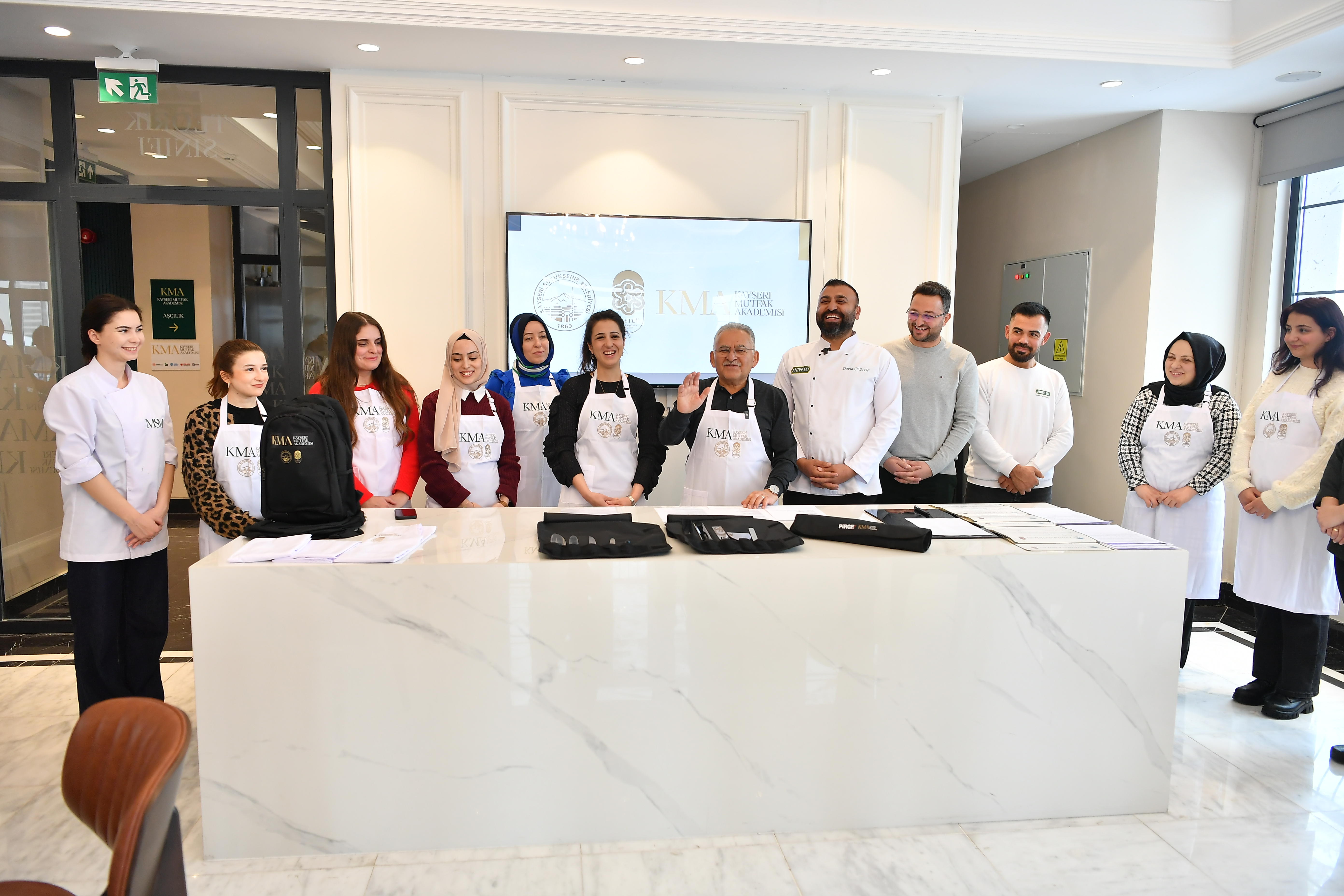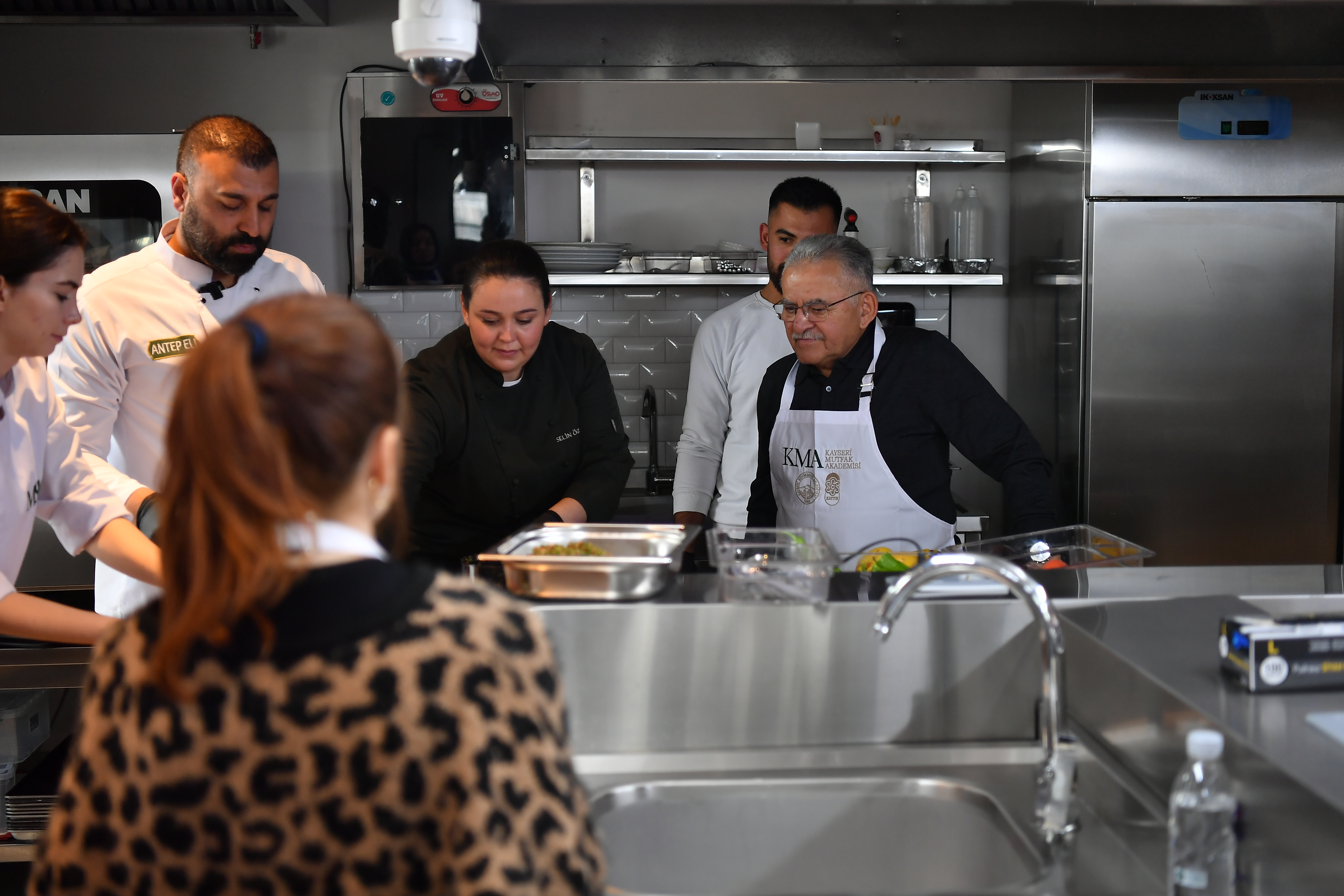 Kayseri Mutfak Akademisi’nde düzenlenen workshopa önlük giyerek katılan Başkan Büyükkılıç, Milli Eğitim Bakanlığı’na bağlı özel bir eğitim kurumu olan akademinin, yiyecek ve içecek sektörüne eğitimli ve profesyonel iş gücü kazandırmayı hedeflediğini belirtti.