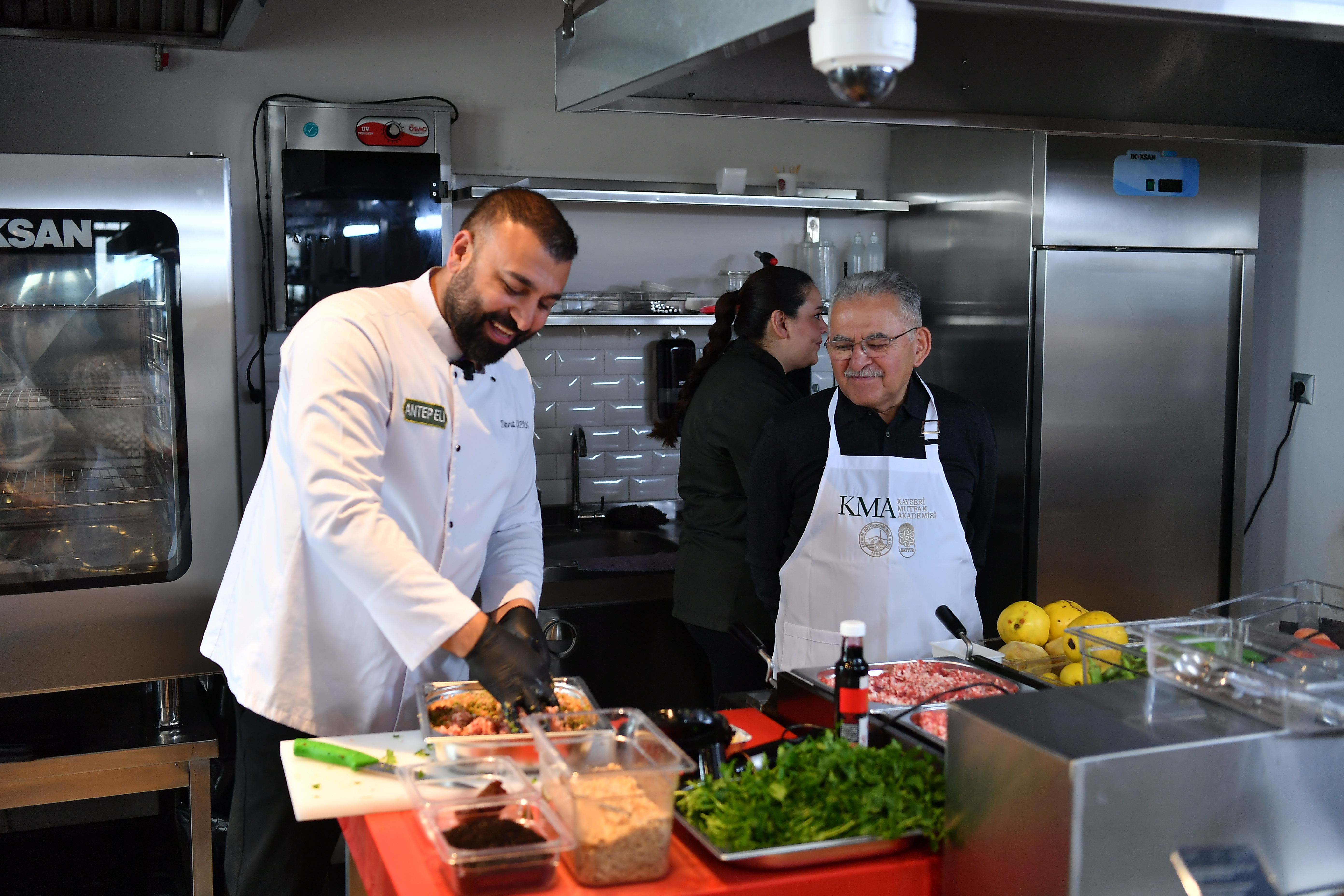 Kayseri Büyükşehir Belediye Başkanı Dr. Memduh Büyükkılıç, Kayseri’de hizmet veren Mutfak Sanatları Merkezi bünyesindeki Kayseri Mutfak Akademisi’nin şef eşliğinde uygulamalı Lahmacun Workshop etkinliğine katıldı. Etkinlikte Başkan Büyükkılıç, Kayseri Mutfak Akademisi’nin 2026 yılı Şubat ayında eğitim faaliyetlerine başlayacağını açıkladı.