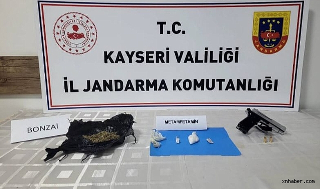 Kayseri İl Jandarma Komutanlığı ekipleri tarafından Kocasinan ilçesinde düzenlenen operasyonda, park halinde bulunan bir araçta 16 gram metamfetamin, 30 gram sentetik kannabinoid (bonzai) ve ruhsatsız bir tabanca ele geçirildi. Araçtaki üç şüpheli gözaltına alınarak haklarında tahkikat başlatıldı.