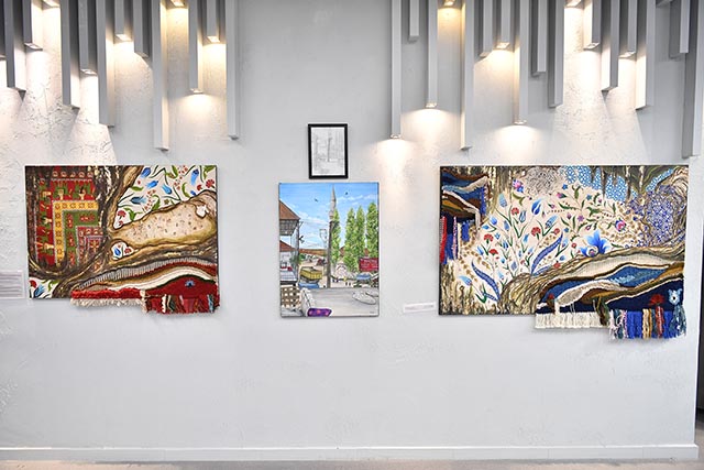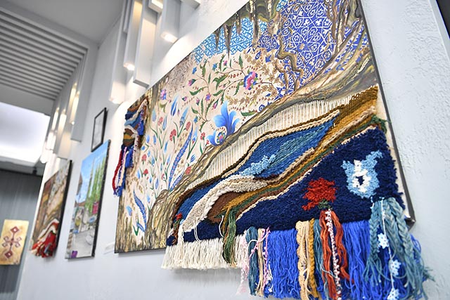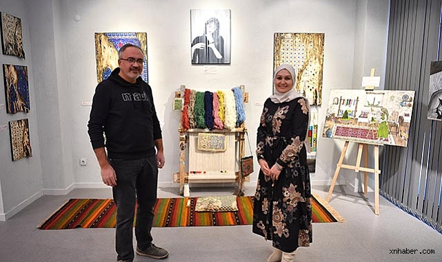 Ressam Hançer, serginin dördüncü kişisel sergisi olduğunu belirterek, “Halı kilim dokumacılığını öğrenip, tablolarımda dokumayı sentezledim” dedi.
