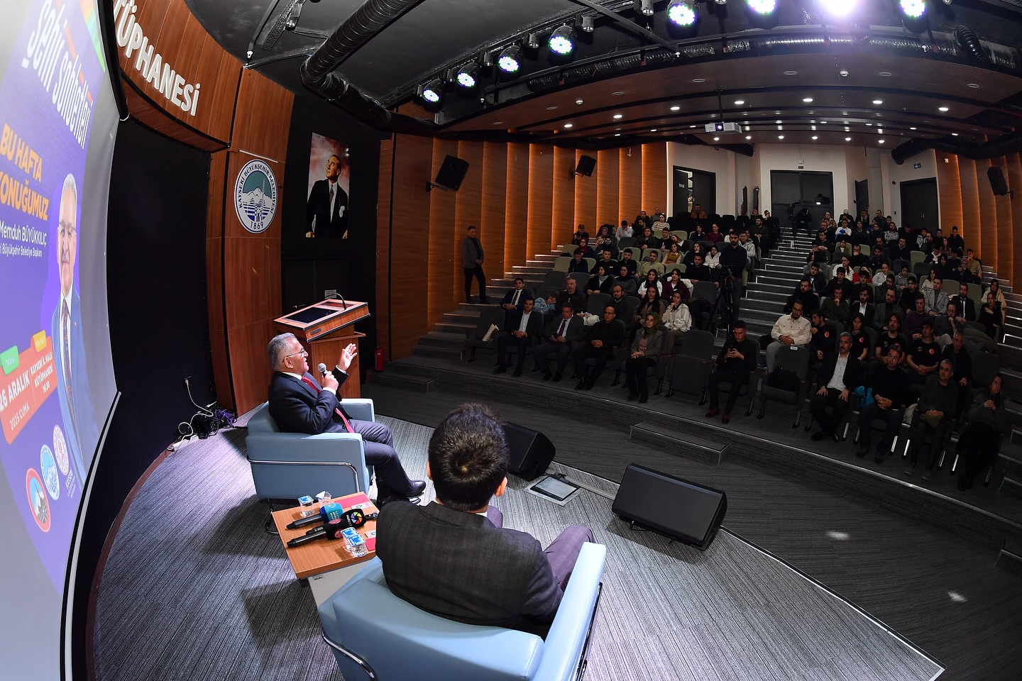26 Aralık Cuma günü saat 16.30’da düzenlenen programa Başkan Büyükkılıç’ın yanı sıra İl Kültür ve Turizm Müdürü Şükrü Dursun, Spor A.Ş. Genel Koordinatörü Fatih Çağan, gençler ve çok sayıda vatandaş katıldı. Program, saygı duruşu ve İstiklal Marşı’nın okunmasının ardından Büyükşehir Belediyesi tarafından hazırlanan “Zenginlikler Şehri Kayseri” belgeselinin izlenmesiyle başladı.