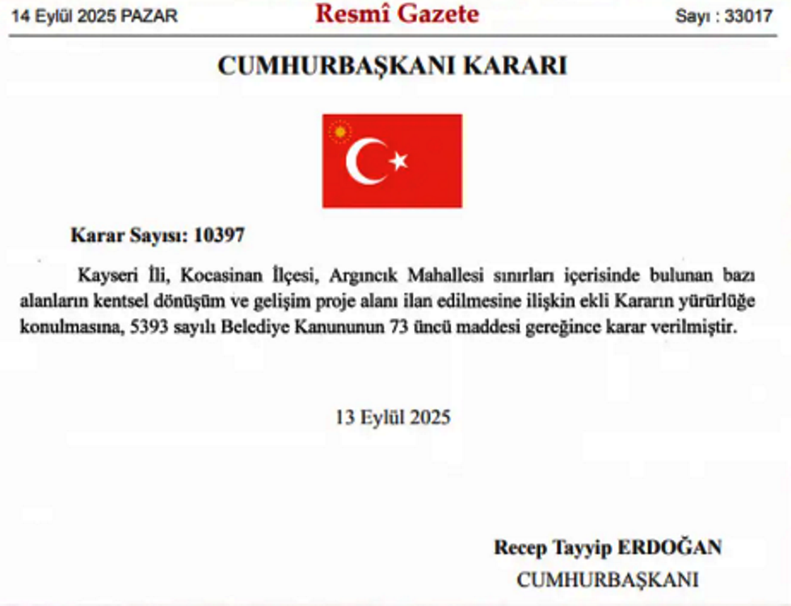 Başkan Çolakbayrakdar açıklamasında, “Argıncık, şehrin geleceğini şekillendirecek; Kayseri tarihinin en büyük dönüşüm kararıdır. Cumhurbaşkanımız Sayın Recep Tayyip Erdoğan’ın imzasıyla, Argıncık Mahallesi sınırları içerisindeki bazı alanların ‘Kentsel Dönüşüm ve Gelişim Proje Alanı’ ilan edilmesinin mutluluğunu yaşıyoruz. Bu karar, binlerce vatandaşımızın hayatına dokunacak çok önemli bir projeyi hayata geçirecek” dedi.