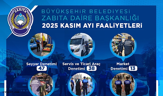 Büyükşehir Belediye Başkanı Dr. Memduh Büyükkılıç’ın talimatları doğrultusunda 7 gün 24 saat esasına göre çalışan zabıta ekipleri, Kasım ayı boyunca seyyar satıcılardan ticari araçlara, çevre kirliliğinden dilencilere kadar birçok alanda denetim yaptı. Ekipler; 47 seyyar satıcı, 38 servis ve ticari araç, 13 market, 53 işgal denetimi ile 18 çevre kirliliği denetimini tamamladı. Ayrıca 45 dilencilik olayına yönelik işlem uygulandı.