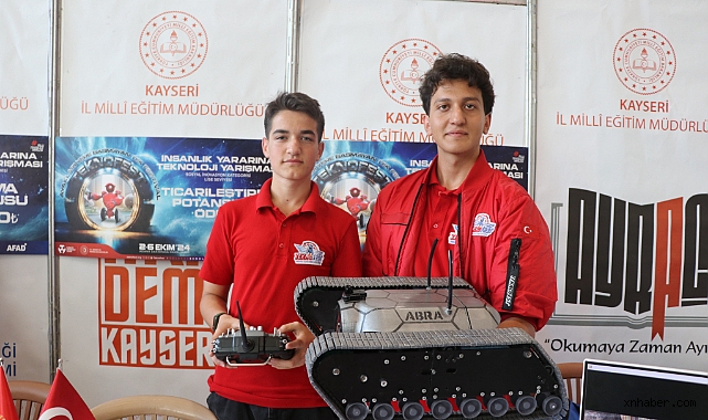 Kayseri'de 50'nci Yıl Dedeman Fen ve Teknoloji Anadolu İmam Hatip Lisesi öğrencileri, 'ABRA' isimli kara ve su üzerinde hareket edebilen amfibik paletli araçlarıyla TEKNOFEST Havacılık Uzay ve Teknoloji Festivali'nde Türkiye ikincisi olmanın gururunu yaşıyor. 16 yaşındaki takım kaptanı Ertuğrulhan Yağmur, aracın paletli yapısı sayesinde balçık, kar ve sahil gibi zorlu koşullarda ilerleyebildiğini ve iki su altı motoruyla su içinde hareket edebildiğini belirtti.