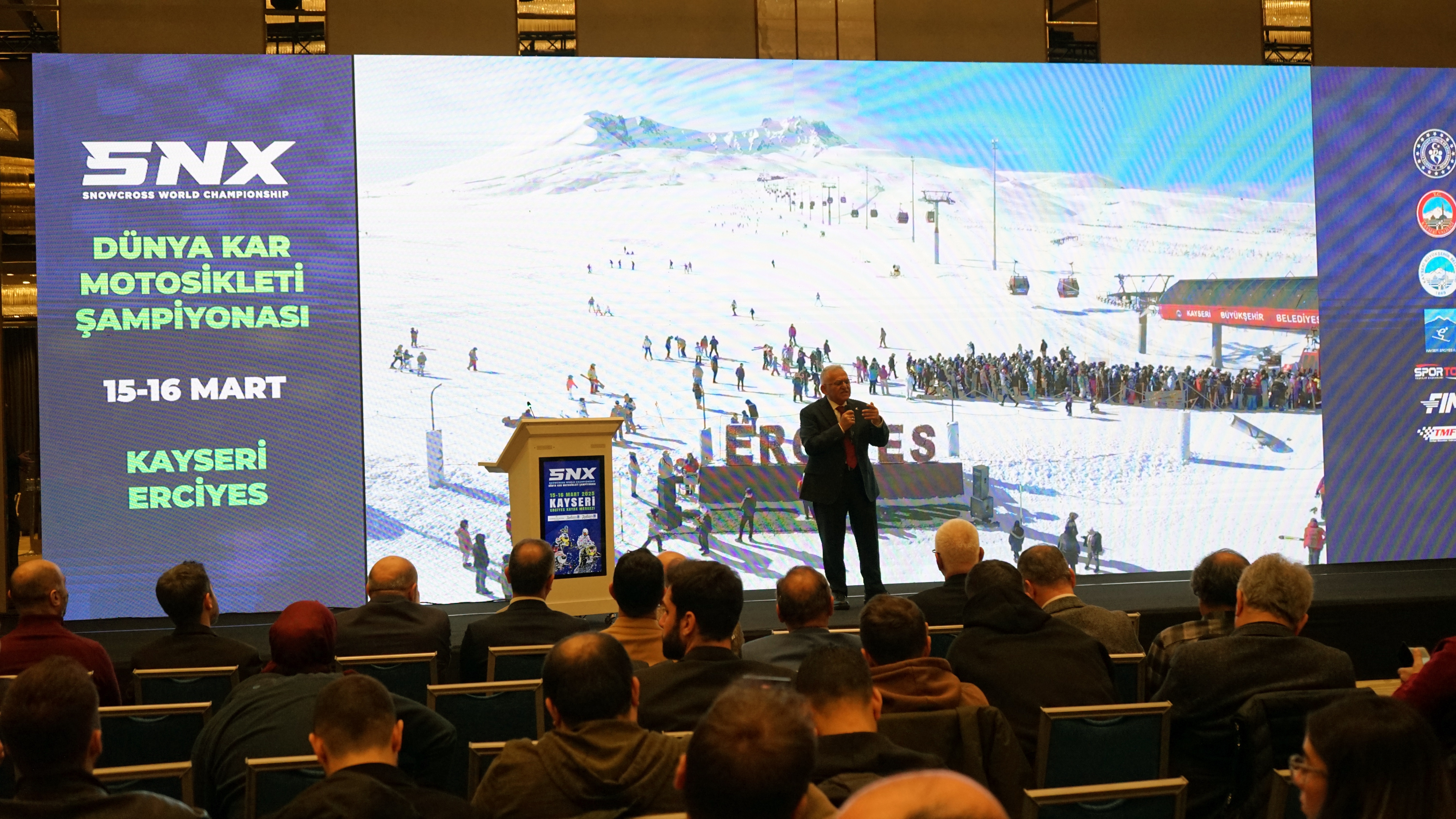 Kayseri Büyükşehir Belediye Başkanı Dr. Memduh Büyükkılıç, 15-16 Mart 2025 tarihlerinde Erciyes Kayak Merkezi’nde gerçekleşecek FIM Dünya Kar Motosikleti Şampiyonası (SNX) için İstanbul’da düzenlenen tanıtım toplantısına katıldı.
