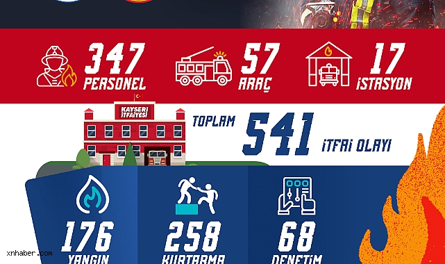 17 istasyon, 57 araç ve 347 personelle hizmet veren Kayseri itfaiyesi, Şubat ayı boyunca toplam 541 itfai olaya müdahalede bulundu. Bu olayların 176’sını yangınlar, 258’ini kurtarma çalışmaları, 90’ını trafik kazaları ve 17’sini ise su baskınları oluşturdu.