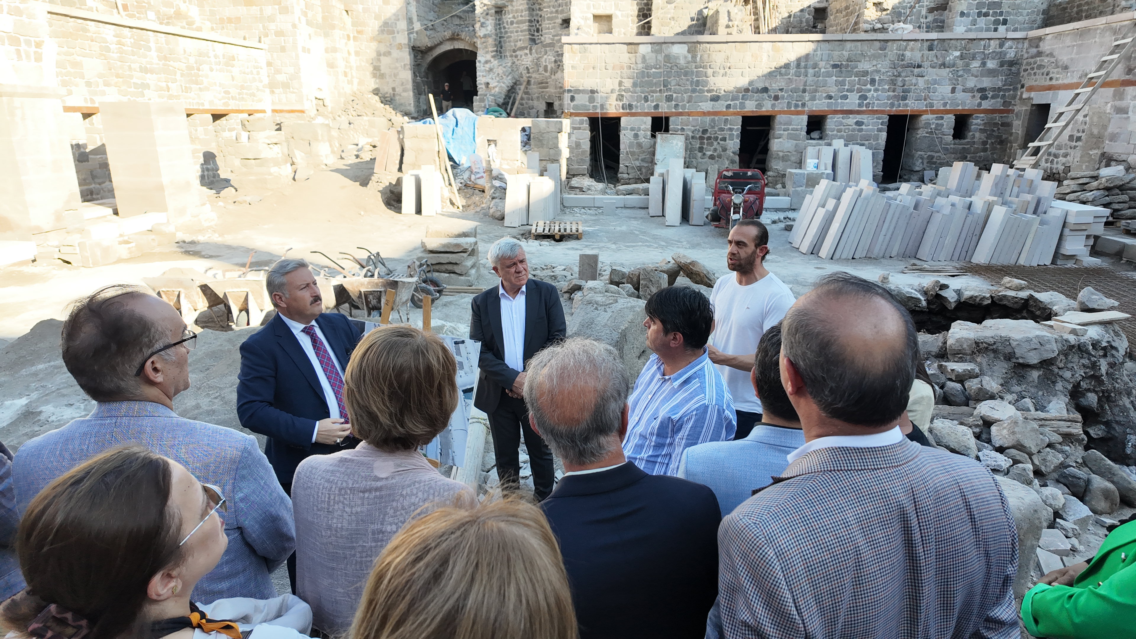 Melikgazi Belediye Başkanı Mustafa Palancıoğlu da Gön Hanı hakkında katılımcılara bilgiler vererek, restorasyon sürecinin detaylarını paylaştı.