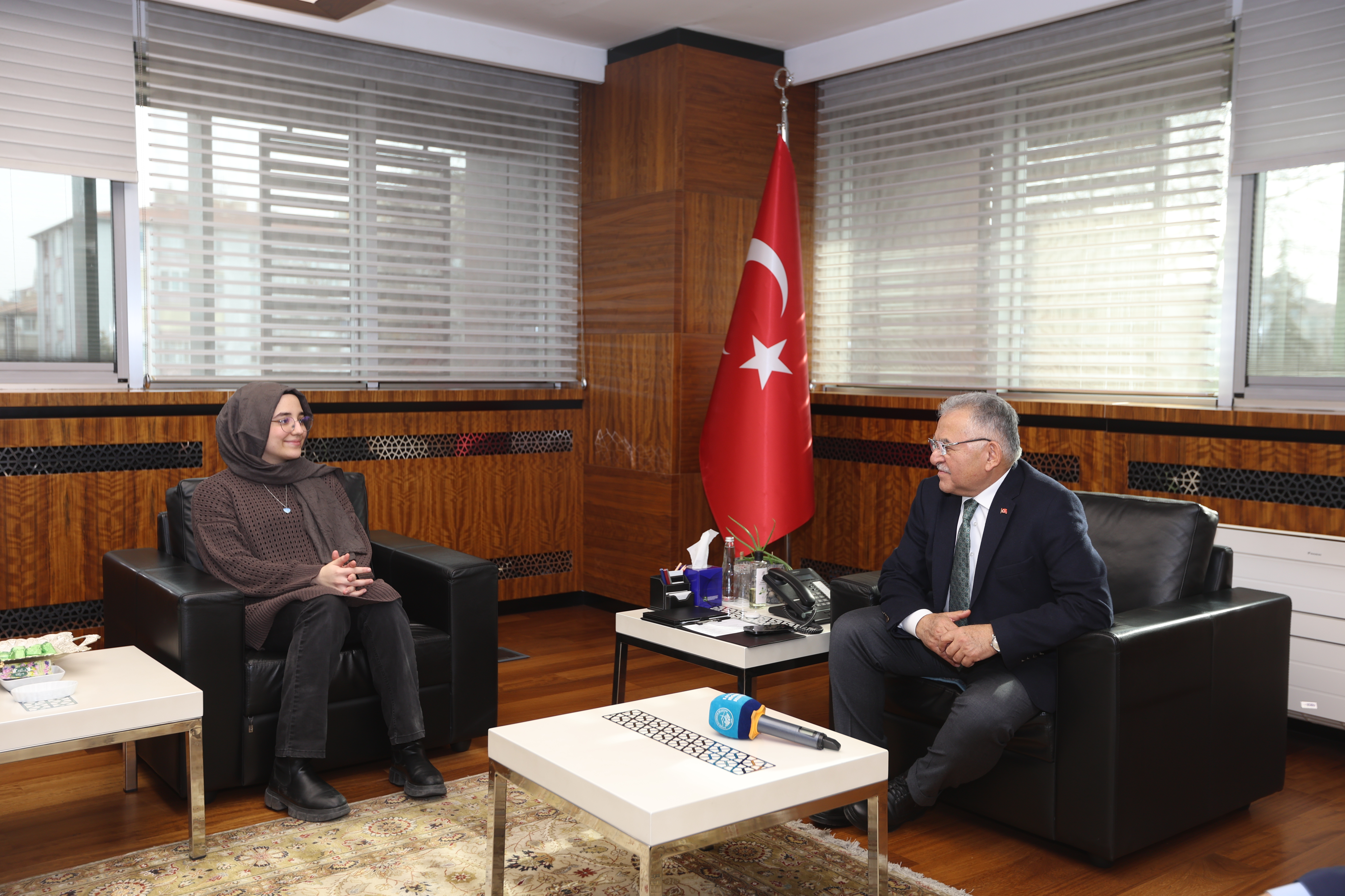 Kayseri Büyükşehir Belediye Başkanı Dr. Memduh Büyükkılıç, uluslararası alanda büyük bir başarıya imza atan genç yetenek Bergüzar Yürüm’ü makamında ağırladı. 2024 yılında Hollanda’da düzenlenen 4’üncü Avrupa Kızlar Bilgisayar Olimpiyatı’nda altın madalya kazanan ve dünyanın en prestijli üniversitelerinden biri olan Massachusetts Institute of Technology’ye (MIT) yüzde 100 bursla kabul edilen Bergüzar, başarısıyla hem şehrini hem de ülkesini gururlandırdı.