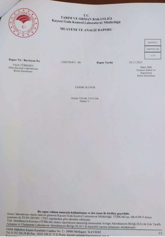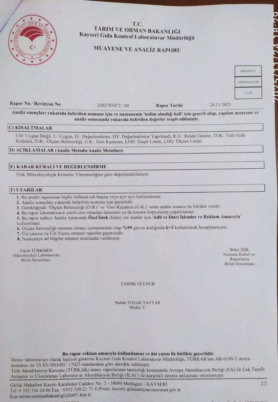 Okul yönetimi, yaşanan durumun kaynağının netleşmemesi üzerine, öğrencilerin sağlığını öncelikli tutarak o gün servis edilen tüm öğünlerin şahit numunelerini Kayseri Gıda Kontrol Laboratuvarı’na gönderdi.