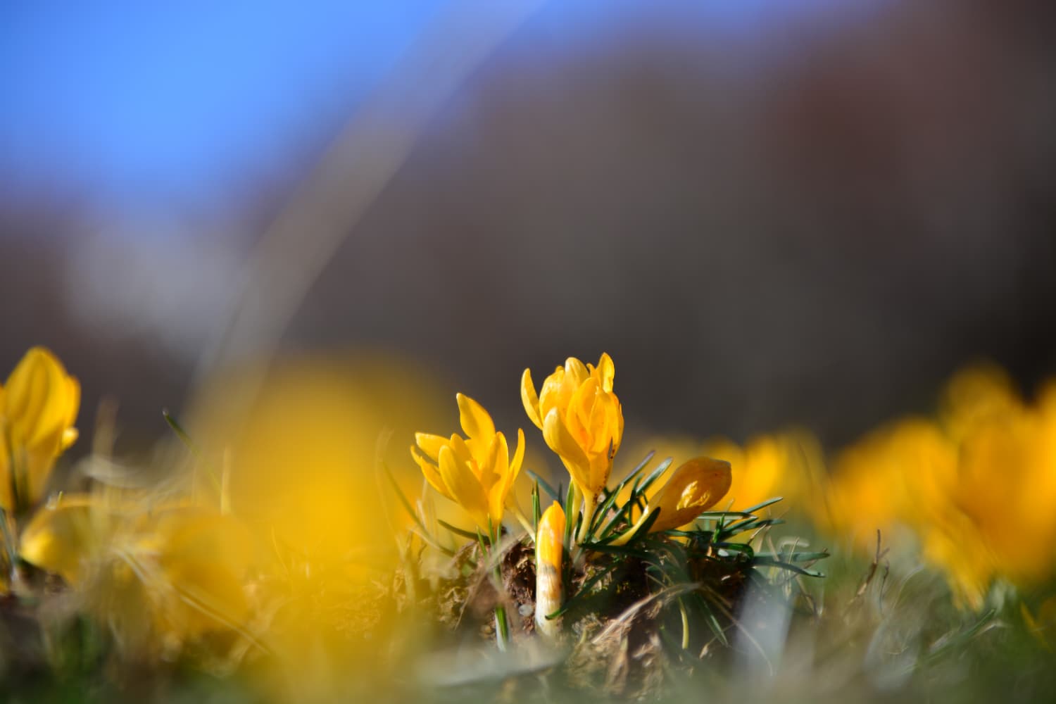 Kayseri’nin Yahyalı ilçesine bağlı Çamlıca Mahallesi yolu üzerindeki Tahrana Yaylası’nda, kış mevsiminin son günlerinde sarı çiğdemler çiçek açtı. Karların erimesiyle gün yüzüne çıkan çiğdemler, geniş mera alanlarını sarı tonlara boyadı.