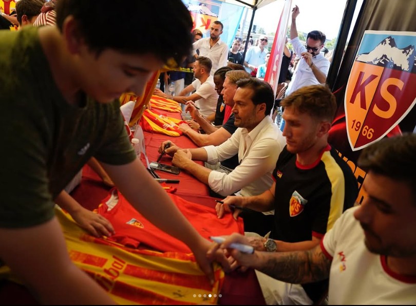 Kayserispor Store önünde gerçekleşen buluşmaya, Kayserispor Başkanı Nurettin Açıkalın, Başkan Yardımcısı Süleyman Akın, Sportif Direktör Muhammed Türkmen ve Store Sorumlusu Sami Delikan da katıldı.