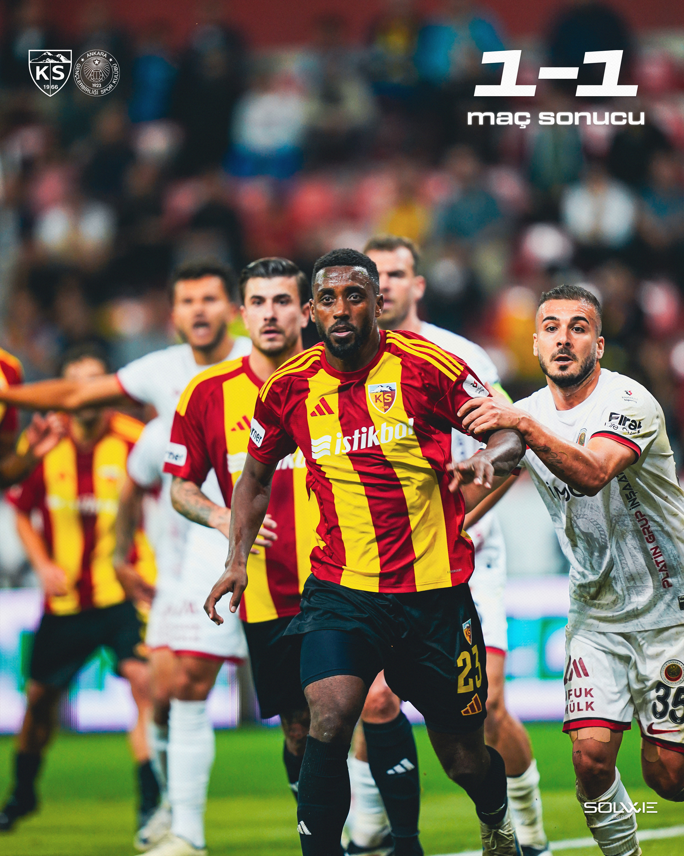Maçtan Öne Çıkan Anlar:46. dakikada Opoku’nun ceza sahası içinden vuruşunu kaleci Erhan çıkardı.dakikada Benes’in sert şutunu başarılı refleksiyle Erhan engelledi.90+1. dakikada Tuci’nin kafa golü, Kayserispor’a kritik 1 puanı getirdi.Maç Kadroları:Kayserispor: