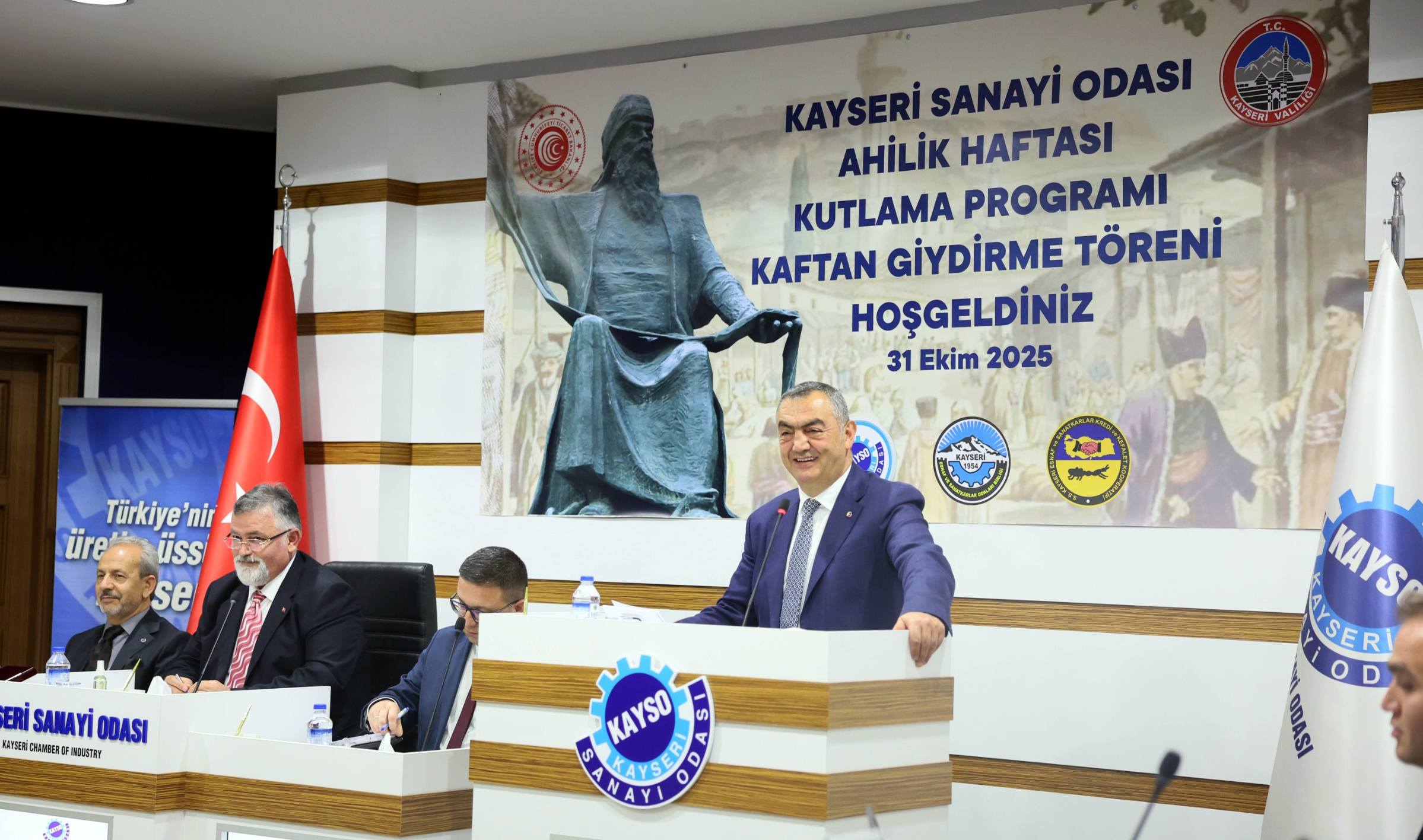 Kayseri ekonomisine yönelik yeni bir araştırma başlattıklarını da açıklayan Büyüksimitci, “TOBB, TEPAV ve Prof. Dr. Recep Ulucak koordinasyonunda, şehir bazlı reel kesim güven endeksi, PMI ve beklenti analizlerini içeren kapsamlı bir çalışma yürütülecek. Kasım ayında Kayseri, Konya ve Mersin’de başlayacak pilot uygulama, sanayimizin eğilimlerini netleştirecek.” dedi. “Yılın Ahisi” Ali Rıza Güldüoğlu’na Kaftan GiydirildiToplantının ardından gerçekleştirilen törende, yarım asrı aşan sanayi yolculuğuyla Kayseri ekonomisine önemli katkılar sağlayan Ali Rıza Güldüoğlu, “Yılın Ahisi” seçilerek kaftan giydi.KAYSO Başkanı Mehmet Büyüksimitci, Ahilik kültürünün dürüstlük, paylaşım ve üretim ilkelerini hatırlatarak, “Yılın Ahisi’ni seçerken sadece iş başarısına değil, topluma kattığı değerlere baktık. Bu anlayışla Ali Rıza Güldüoğlu abimizi, çalışkanlığı, tevazusu ve dürüstlüğüyle bu unvana layık gördük.” dedi.Kayseri Valisi Gökmen Çiçek ise törende yaptığı konuşmada, “Zenginlik, makam elbette önemli ama güvenilir insan diye anılmak çok daha kıymetli. Güldüoğlu ailesi bu anlamda örnek bir aile. Bugün bu tercihe şahitlik etmekten onur duyuyorum.” ifadelerini kullandı.“Yılın Ahisi” seçilen Ali Rıza Güldüoğlu da duygularını paylaşarak, “Bu ödül bana verilmiş olsa da asıl başarı ailemin, kardeşlerimin ve yol arkadaşlarımın ortak emeğidir. Ahilik değerlerini yaşatmaya ve gelecek nesillere aktarmaya devam edeceğiz.” dedi.Törenin sonunda Kayseri Valisi Gökmen Çiçek ve KAYSO Başkanı Mehmet Büyüksimitci tarafından Ali Rıza Güldüoğlu’na kaftan giydirildi.