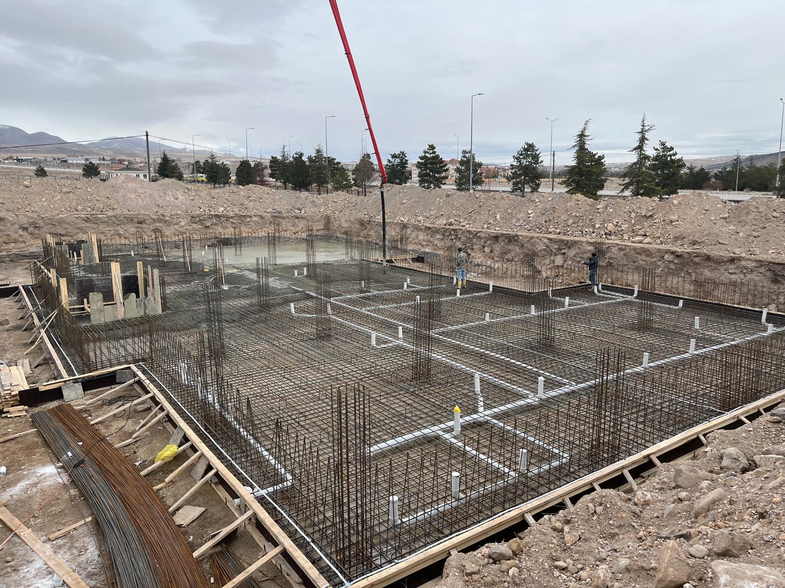 Kayseri Üniversitesi (KAYÜ) Develi Seyrani Kampüsü’nde Hatice Mine ve Nevzat Nüzhet Çulhaoğlu Aşçılık Uygulama ve Eğitim Binası inşaatı tüm hızıyla sürüyor. Kış şartlarının zorluğuna rağmen projede çalışan ekipler, modern bir eğitim kompleksini hayata geçirmek için gece gündüz demeden çalışıyor.