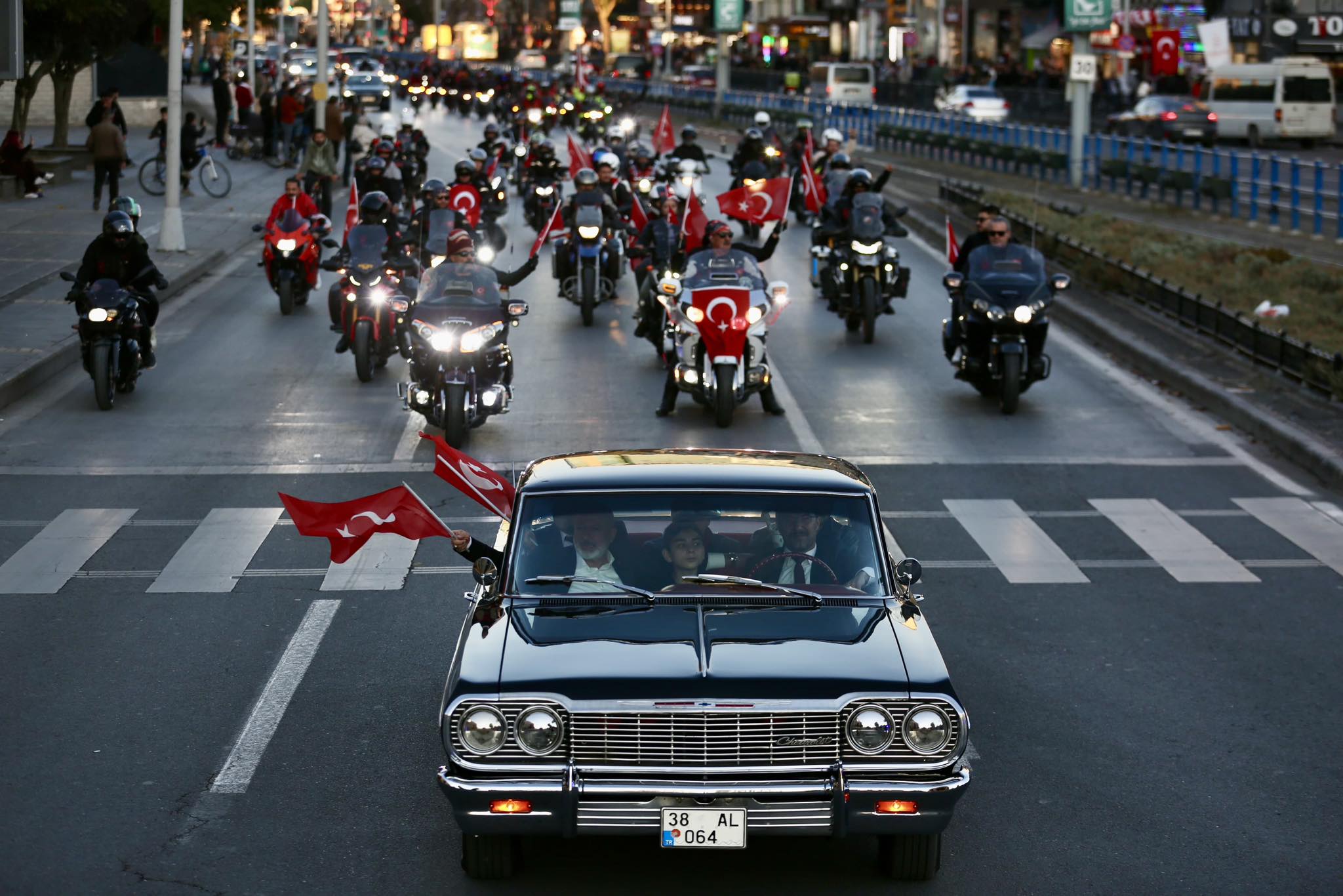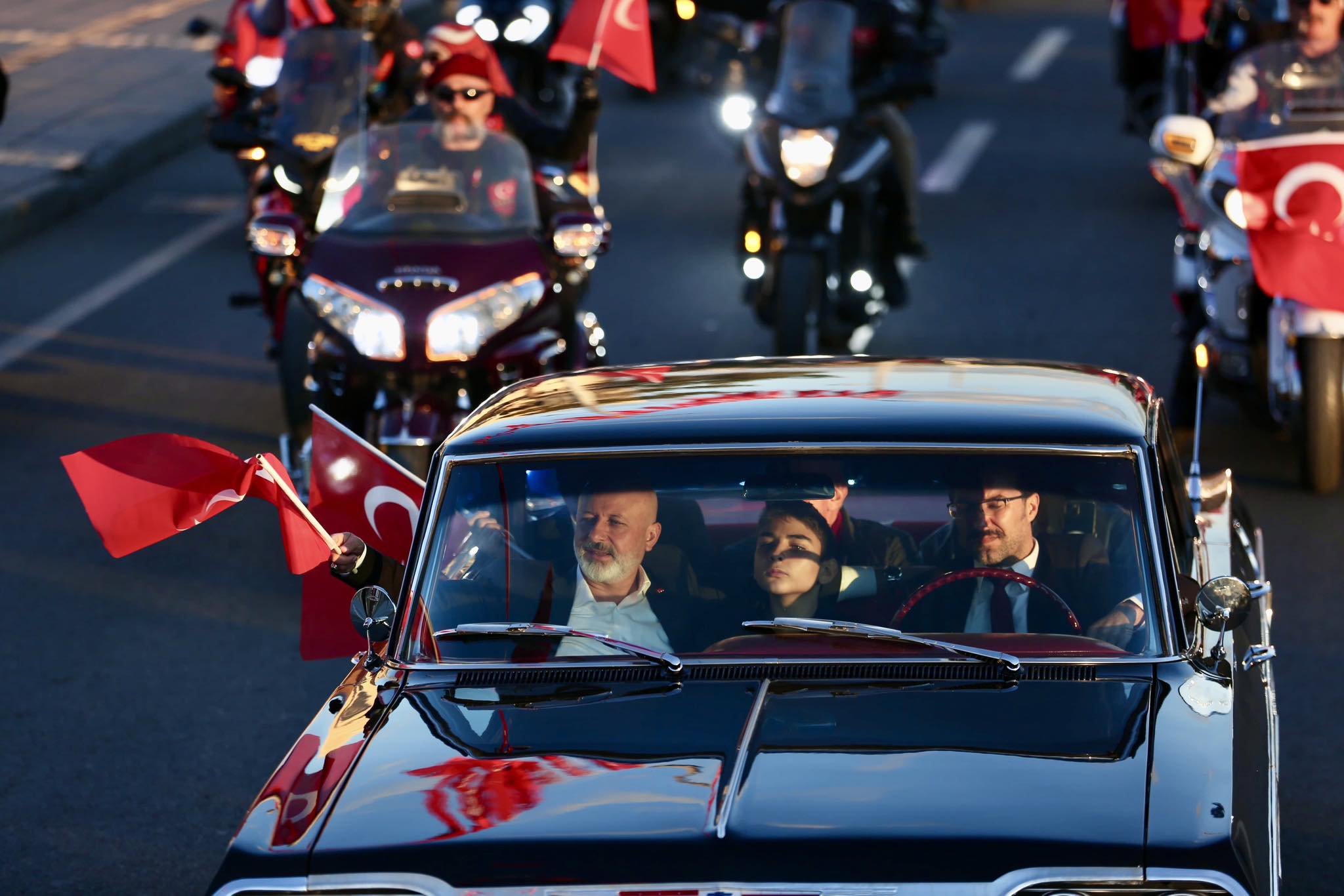 Korteje vatandaşların ilgisi yoğun olurken, Kocasinan Belediye Başkanı Ahmet Çolakbayrakdar, şehit ve gazi çocuklarıyla birlikte klasik araçtan halkı selamladı. Balkondan, caddeden, sokaktan el sallayan vatandaşlar, bayraklarıyla korteje eşlik etti.