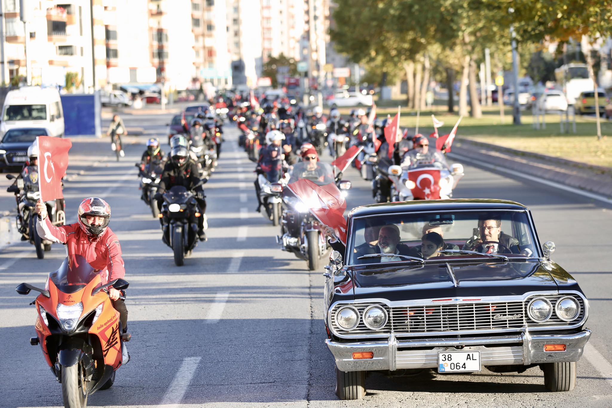Kayseri’nin Kocasinan ilçesinde Cumhuriyet’in 102. yılı, büyük bir coşku ve gururla kutlandı. Kocasinan Belediyesi öncülüğünde düzenlenen “Ay Yıldız Turu”, vosvoslardan TOGG’lara, klasik araçlardan motosikletlere kadar yüzlerce aracın katılımıyla gerçekleştirildi.