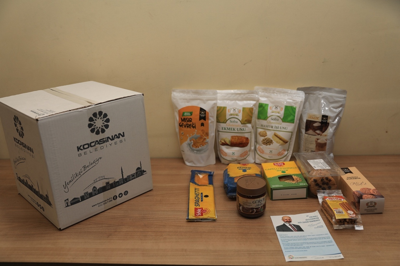 Öte yandan Kocasinan Belediyesi Sosyal Yardım İşleri Müdürlüğü tarafından hazırlanan glütensiz paketlerin içerisinde; kek unu, hamur işi unu, nişastalı karışım, kakaolu çıtır top, burgu makarna, spagetti, şehriye, köftelik bulgur, fındık ezmesi, portakallı mini kek ve susamlı çubuk kraker yer alıyor.