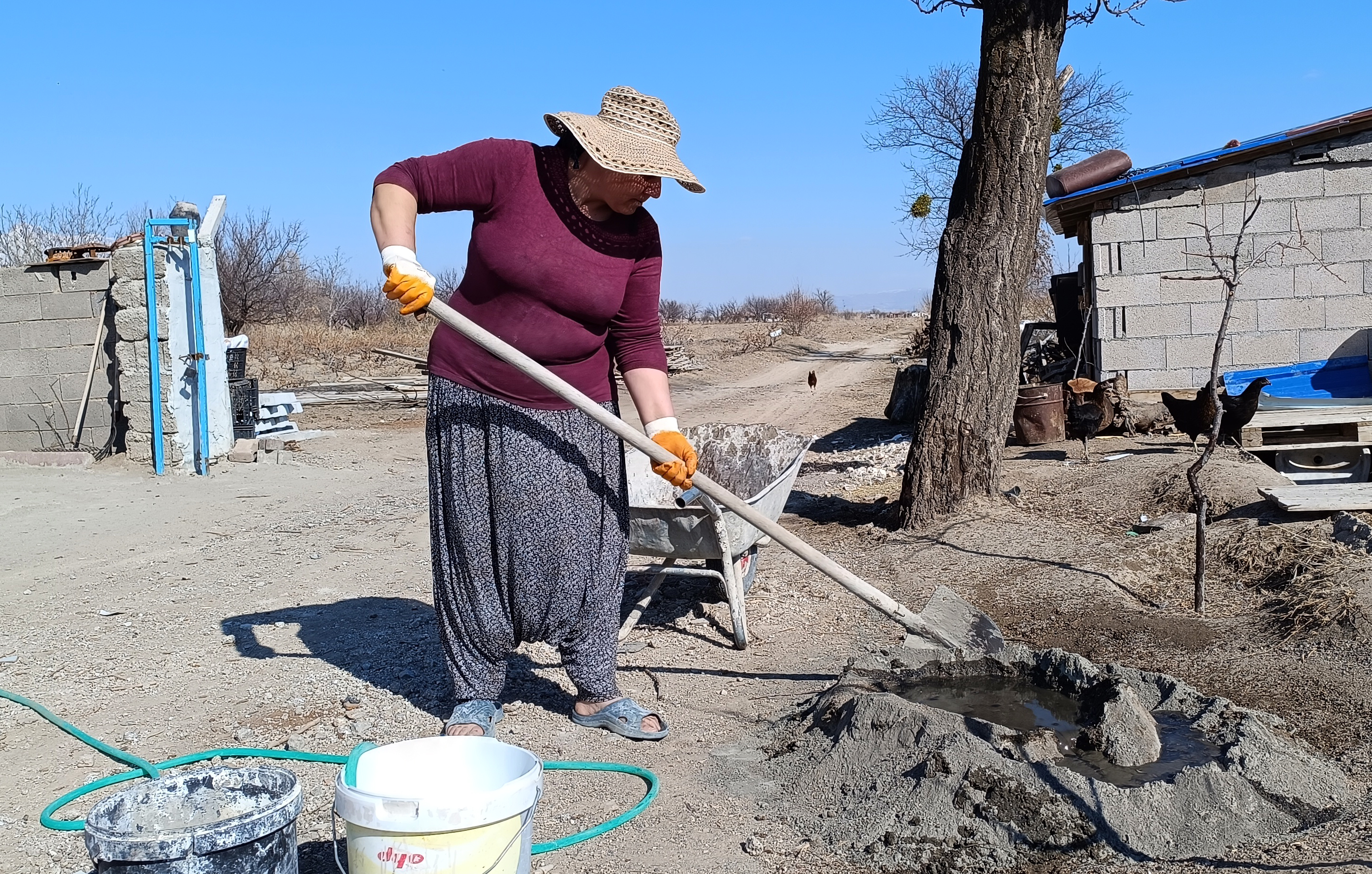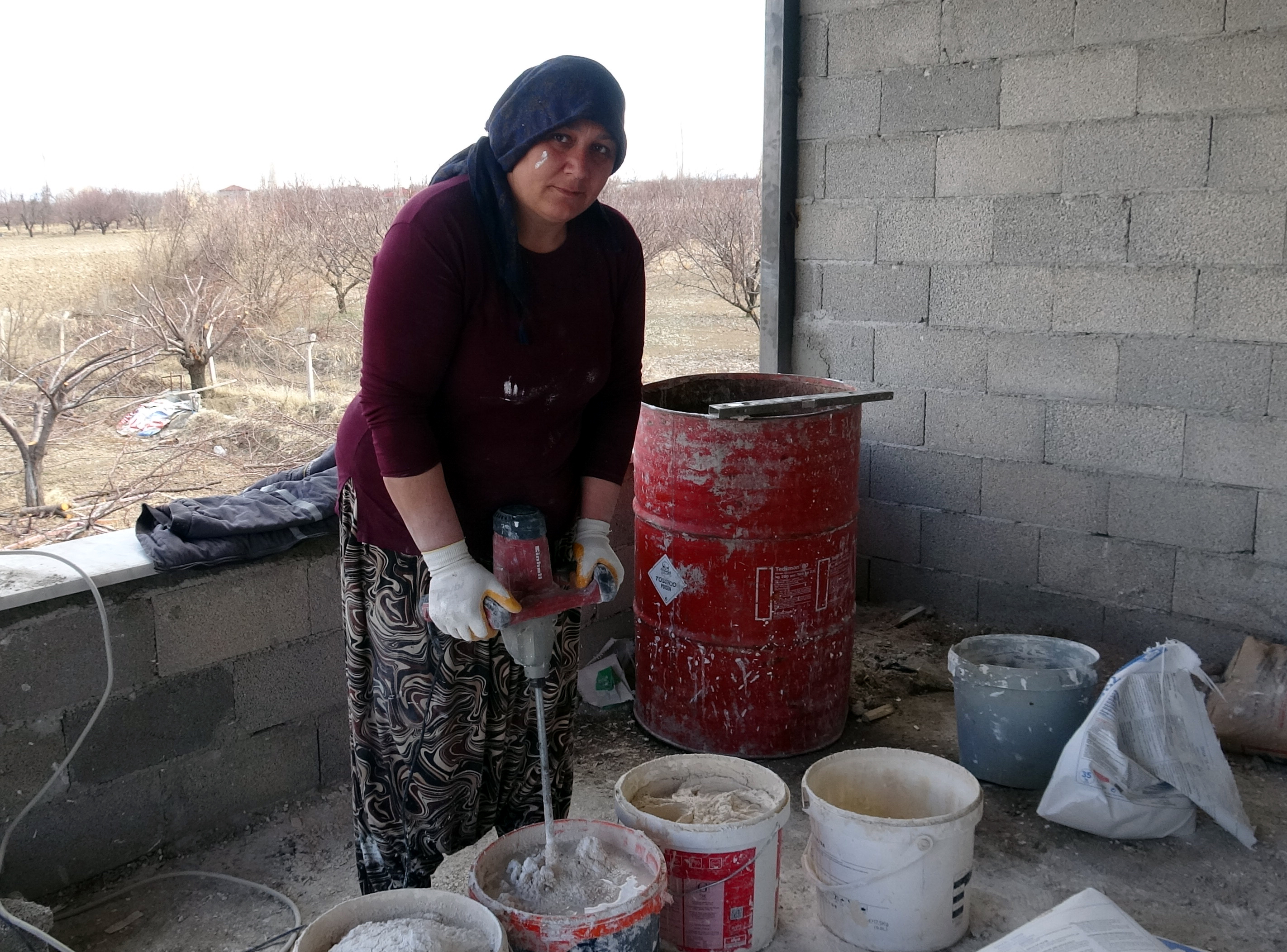 'EŞİME, 'BANA DA ÖĞRET' DEDİM'Alime Oğuz, "2014 yılından beri eşimle beraber bu mesleği yapıyorum. Eşim, inşaattan düştükten sonra geçim sıkıntılarımız oldu. Eşime, 'Bana da öğret, ben de yapayım' dedim. Sonrasında 'acaba yapabilir miyim?' düşüncesi oldu ve başladım. Harç karma ile başlayıp, makinesi, sıvası, laminantı derken bugünlere kadar geldik. Geçim sıkıntımız olduğu için bir nevi mecbur kaldım. Eşim düştükten sonra çalışamadı. Vücudu bazı ağır yükleri kaldıramadı. İnşaatın iskelesi gibi ağır işleri kaldıramadı. Üstlenmek zorunda kaldım" diye konuştu.
