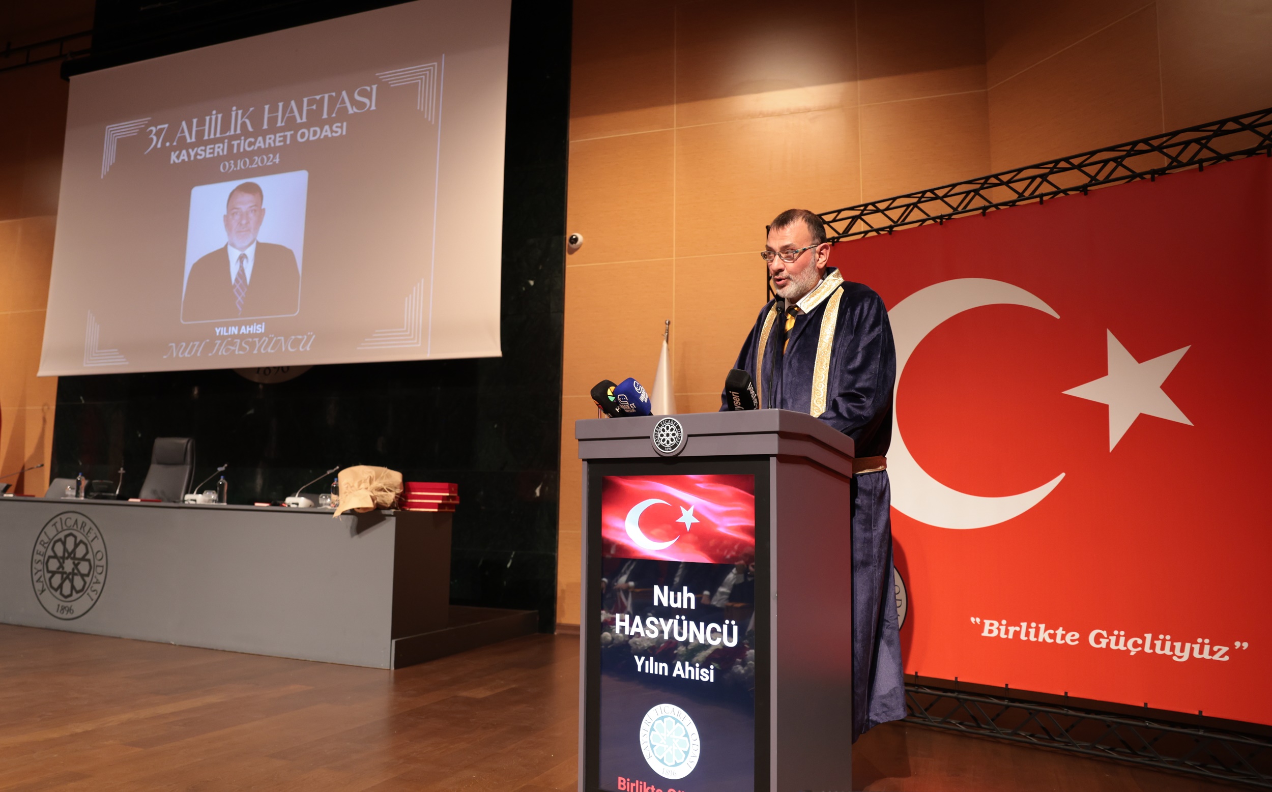 Kayseri Ticaret Odası (KTO) tarafından ‘Yılın Ahisi’ seçilen hayırsever iş insanı Nuh Hasyüncü’ye, Ahilik Haftası etkinlikleri kapsamında düzenlenen törende ‘Ahilik Kaftanı’ giydirildi. Tören, Kayseri Ticaret Odası M. Rifat Hisarcıklıoğlu Konferans Salonu’nda gerçekleştirildi ve Mehteran Takımı’nın gösterileriyle başladı.