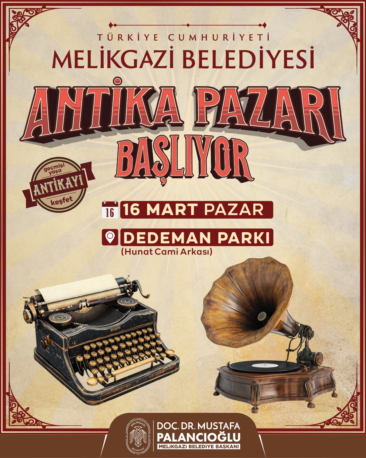 Melikgazi Belediye Başkanı Doç. Dr. Mustafa Palancıoğlu, Antika Günleri etkinliği hakkında yaptığı açıklamada, "Her ayın 3. pazar günü düzenleyeceğimiz bu etkinlik, antikacılara ticari anlamda fırsat sunmanın yanı sıra, şehrimizde antika kültürünü yaşatacak bir organizasyon olacak. Antika eşyaların her birinin ayrı bir hikayesi, hatırası var. Bu etkinlik ile Kayserili hemşehrilerimiz nostaljik bir alışveriş deneyimi yaşayacak" dedi.