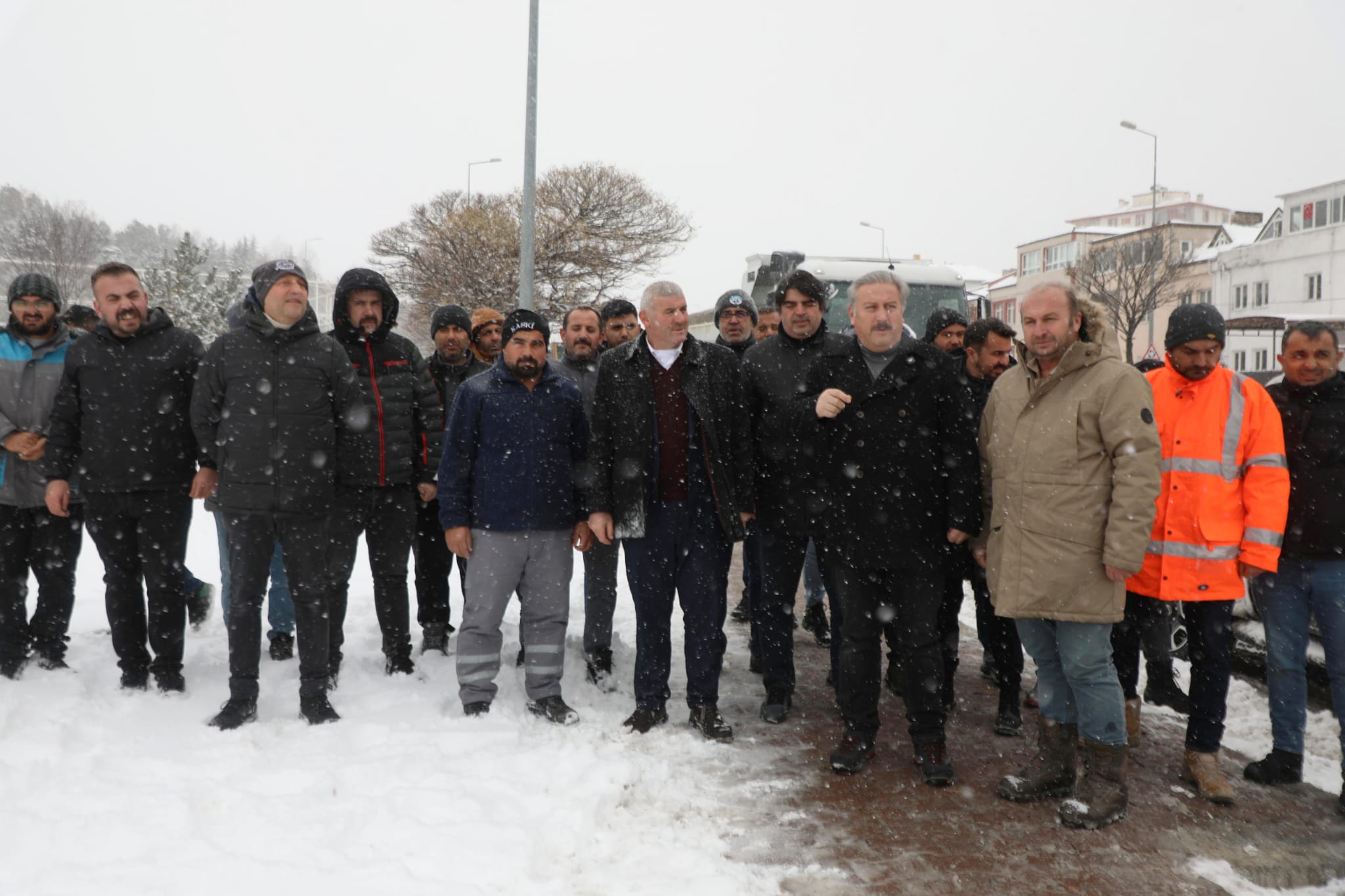 Kar yağışına karşı tüm tedbirlerin alındığını belirten Palancıoğlu, birlik ve beraberlik içerisinde çalışmaların sürdürüleceğini dile getirdi. Sahada vatandaşlarla bir araya gelen Başkan, kazasız ve belasız bir kış temennisinde bulundu.