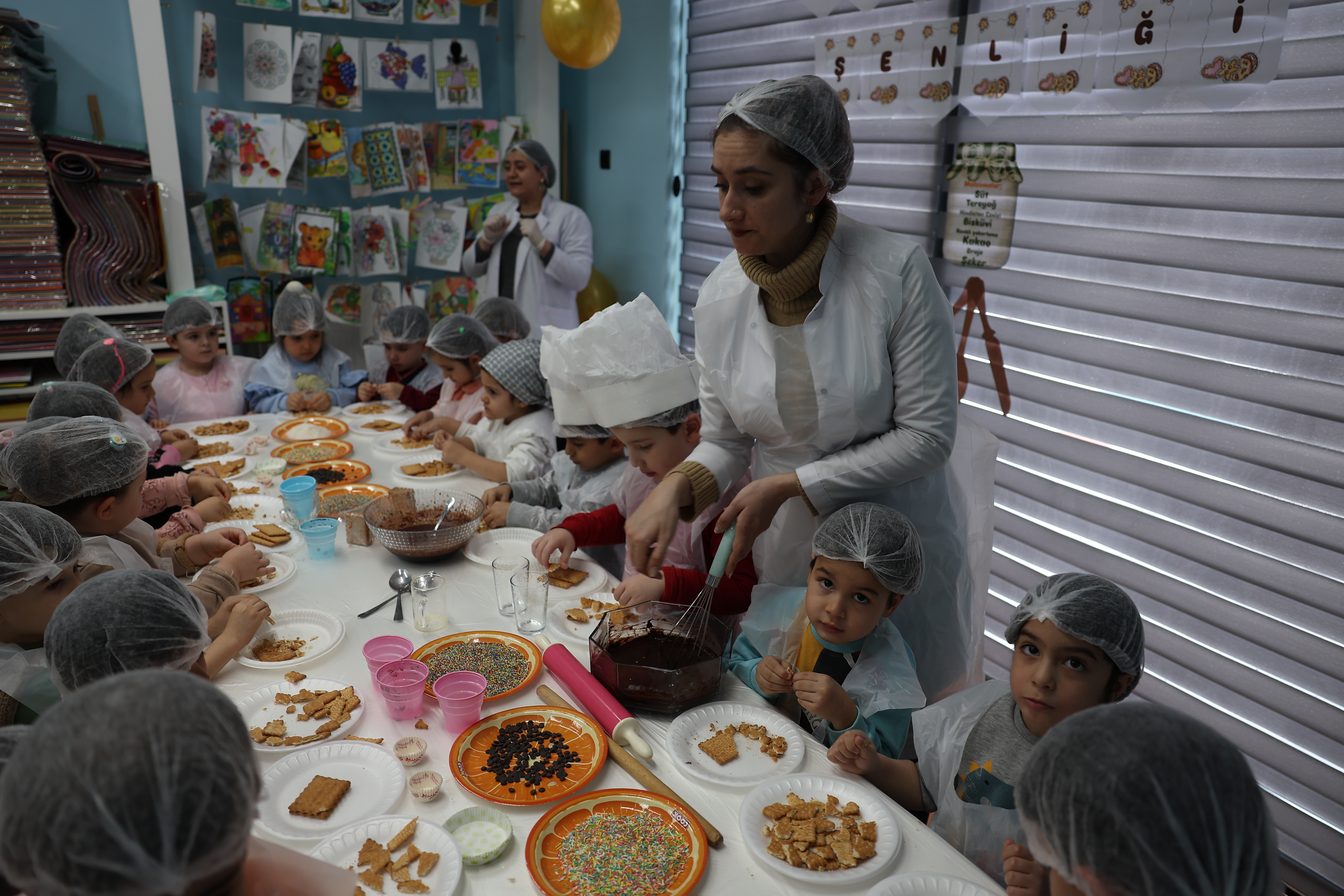 Bu kapsamda düzenlenen ‘Kurabiyemi Tasarlıyorum’ etkinliğinde, minik kütüphane üyeleri kendi kurabiyelerini tasarlama fırsatı buldu. Hijyen kurallarına uygun şekilde önlük ve bone takarak mutfağa giren çocuklar, Kurabiye süslemenin inceliklerini öğrendi. Renkli şekerlemelerle süsledikleri kurabiyeleri keyifle yiyen minikler, hem el becerilerini geliştirdi hem de eğlenceli vakit geçirdi.