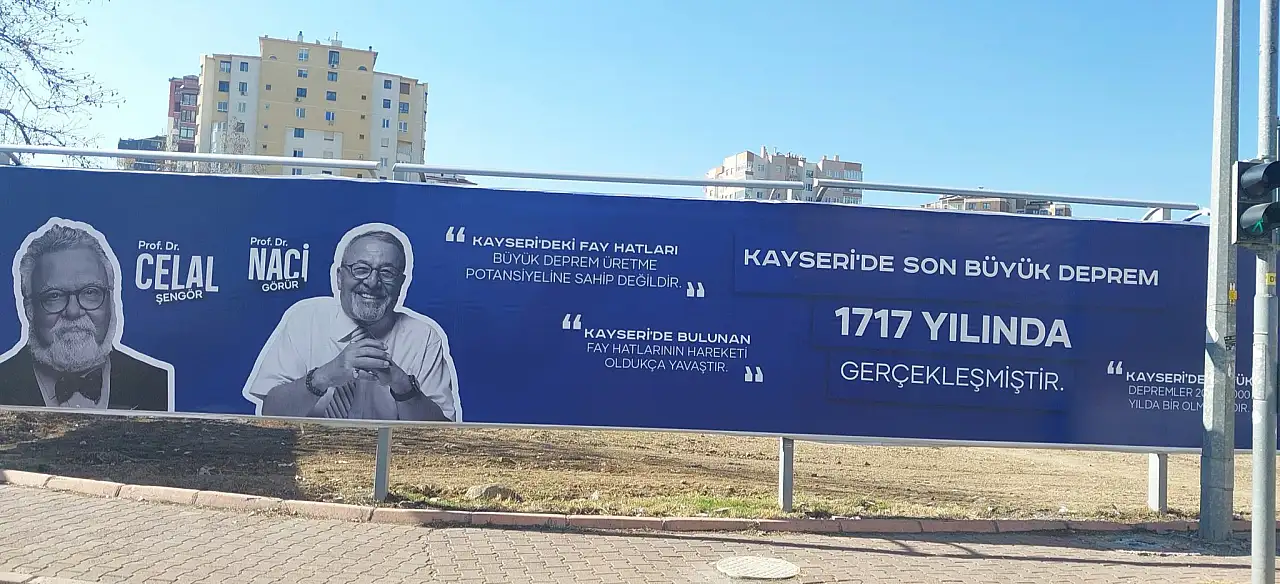 Kayseri’de bir beton firması, reklam panosunda Prof. Dr. Naci Görür ve Prof. Dr. Celal Şengör’e ait olduğu öne sürülen ifadeleri kullanarak dikkat çekti. Panoda, "Kayseri’de son büyük deprem 1717 yılında gerçekleşmiştir" ifadesinin yanı sıra, deprem uzmanlarının Kayseri’deki fay hatlarıyla ilgili söyledikleri iddia edilen cümlelere yer verildi. "Kayseri’deki fay hatları büyük deprem üretme potansiyellerine sahip değildir" ve "Kayseri’de bulunan fay hatlarının hareketi oldukça yavaştır" şeklindeki ifadeler, iki uzmanın söylemleriymiş gibi sunuldu.