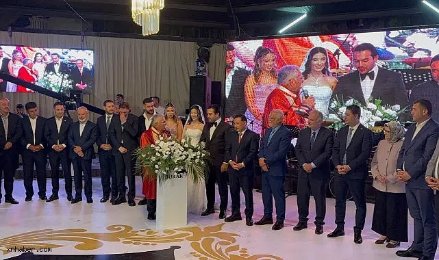 Düğüne katılan protokol üyeleri, genç çifte mutluluklar diledi.