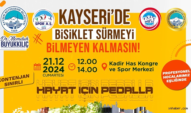 Kentte gerek amatör, gerekse profesyonel sporun adresi haline gelen ve faaliyetleri ile büyük ilgi gören Büyükşehir Spor A.Ş., 18 ile 75 arasındaki her vatandaşı davet ederek, bisiklet sürmeyi öğrenme eğitimi gerçekleştiriyor.2024 Yılı ACES Avrupa Spor Şehri seçilen ve ‘Altın Bayrak’ elde eden Kayseri’de birbirinden farklı ve güzel spor aktivitelerine imza atan Spor A.Ş.’nin bisiklet sürme eğitimi hakkında detaylı bilgi 0532 677 90 38 nolu telefondan edinilebilirken, kayıtlar ise www.sporaskayseri.com.tr web adresi üzerinden gerçekleştirilebilecek.Katılımın Tamamen Ücretsiz Olduğu Eğitimlerde, Her Türlü Önlem ve Gereksinim SağlandıKadir Has Kongre ve Spor Merkezi’nde düzenlenecek, katılımın tamamen ücretsiz olduğu ‘Hayat İçin Pedalla’ eğitimleri için kayıtlar 13-20 Aralık 2024 tarihlerinde gerçekleştirilebilirken, kayıtlar sadece online olarak yapılacak. Kontenjanın sınırlı olduğu eğitimlerde, belirtilen gün ve saatte Kadir Has Kongre ve Spor Merkezi kapalı basketbol sahasında hazır olunması, temel eğitim programı için bisiklet ve kask temininin Spor A.Ş. tarafından yapılacağı, rahat kıyafet ve spor ayakkabı tercih edilmesi gerektiği, terlik, kösele ayakkabı, etek, elbise, bol paça ve kol bağlama ipi bulunan zorlayıcı veya bisikletin hareketli aksamlarına dolanabilecek özellikleri olan kıyafetlerin tercih edilmemesi, kıyafeti bisiklet kullanımına uygun olmayan ve düşme riski teşkil eden kişilerin eğitime alınmayacağı ayrıca alanda hijyen şartlarının sağlanmış olduğu, kask temininin yapılacağı bildirildi.