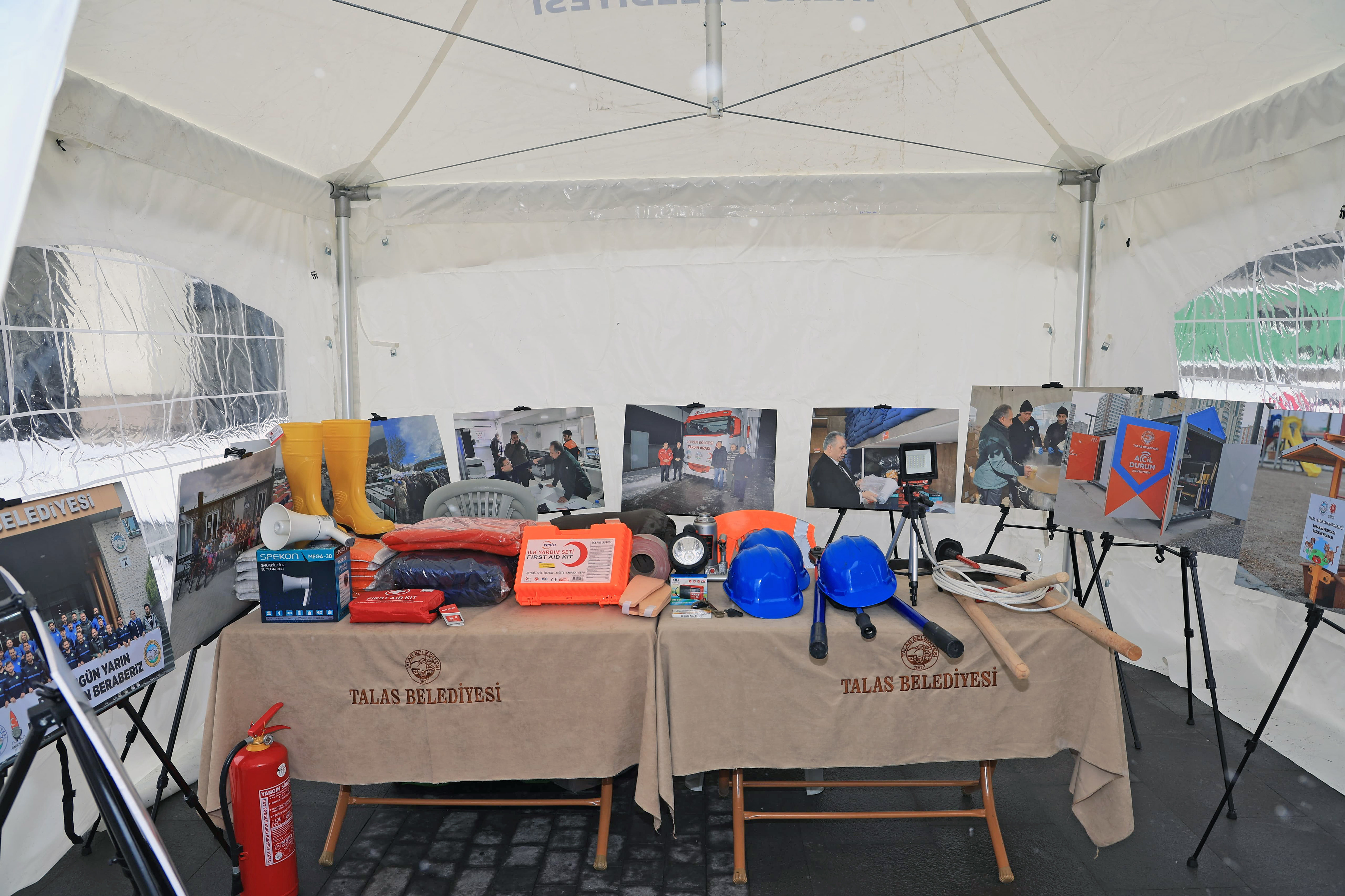Talas Belediye Başkanı Mustafa Yalçın’ın öncülüğünde hayata geçirilen çalışmada, vatandaşlara deprem anında alınması gereken önlemler anlatılırken, ilçedeki parklarda bulunan deprem konteynerlerinin içeriği hakkında da bilgilendirme yapılıyor.
