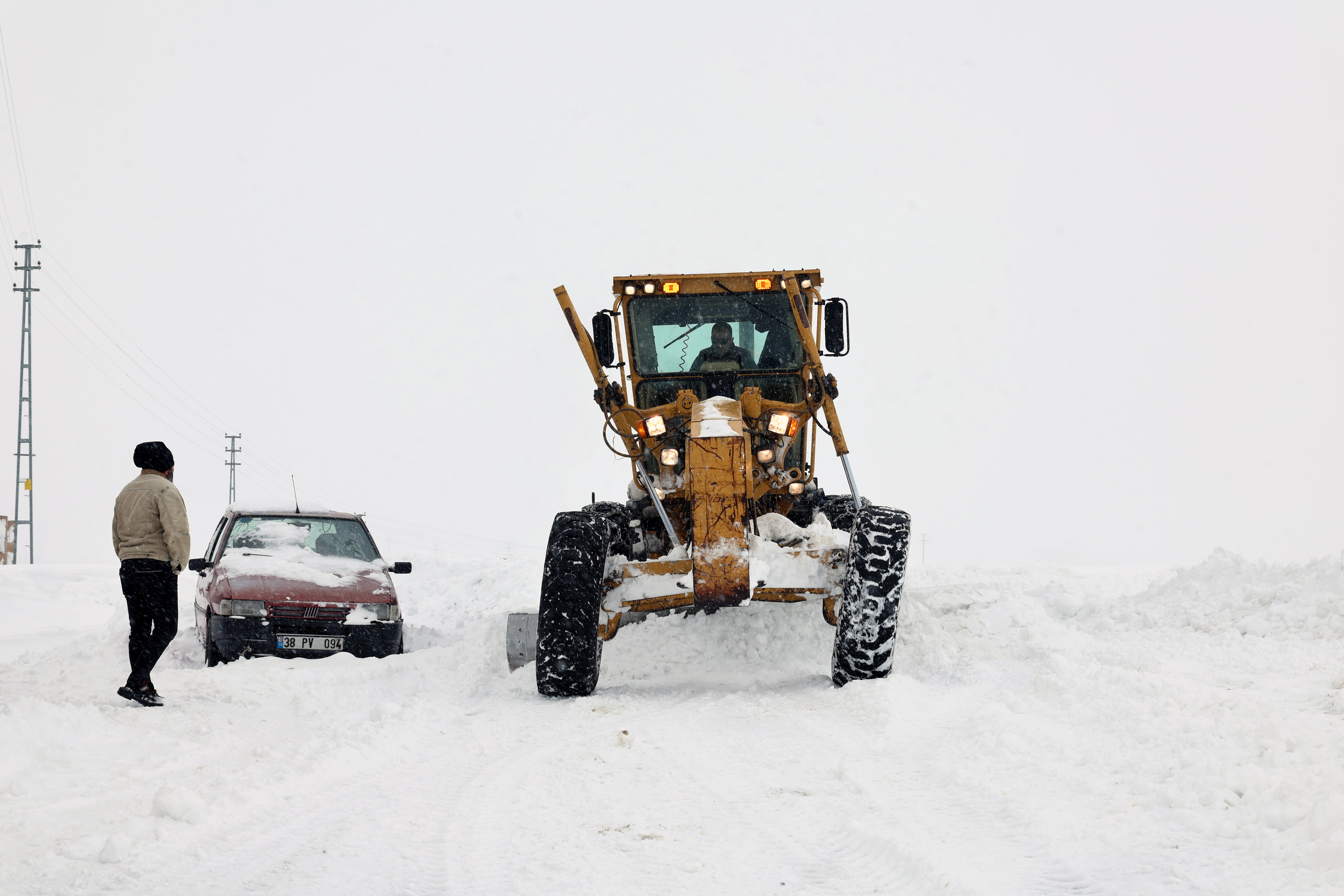 Talas kırsalında yer yer 1 metreyi aşan kar nedeniyle yolda kalan vatandaşlara ulaşan ekipler, araçları mahsur kalan sürücülerin yardımına koştu. Yapılan müdahalelerle yollar yeniden ulaşıma açıldı.