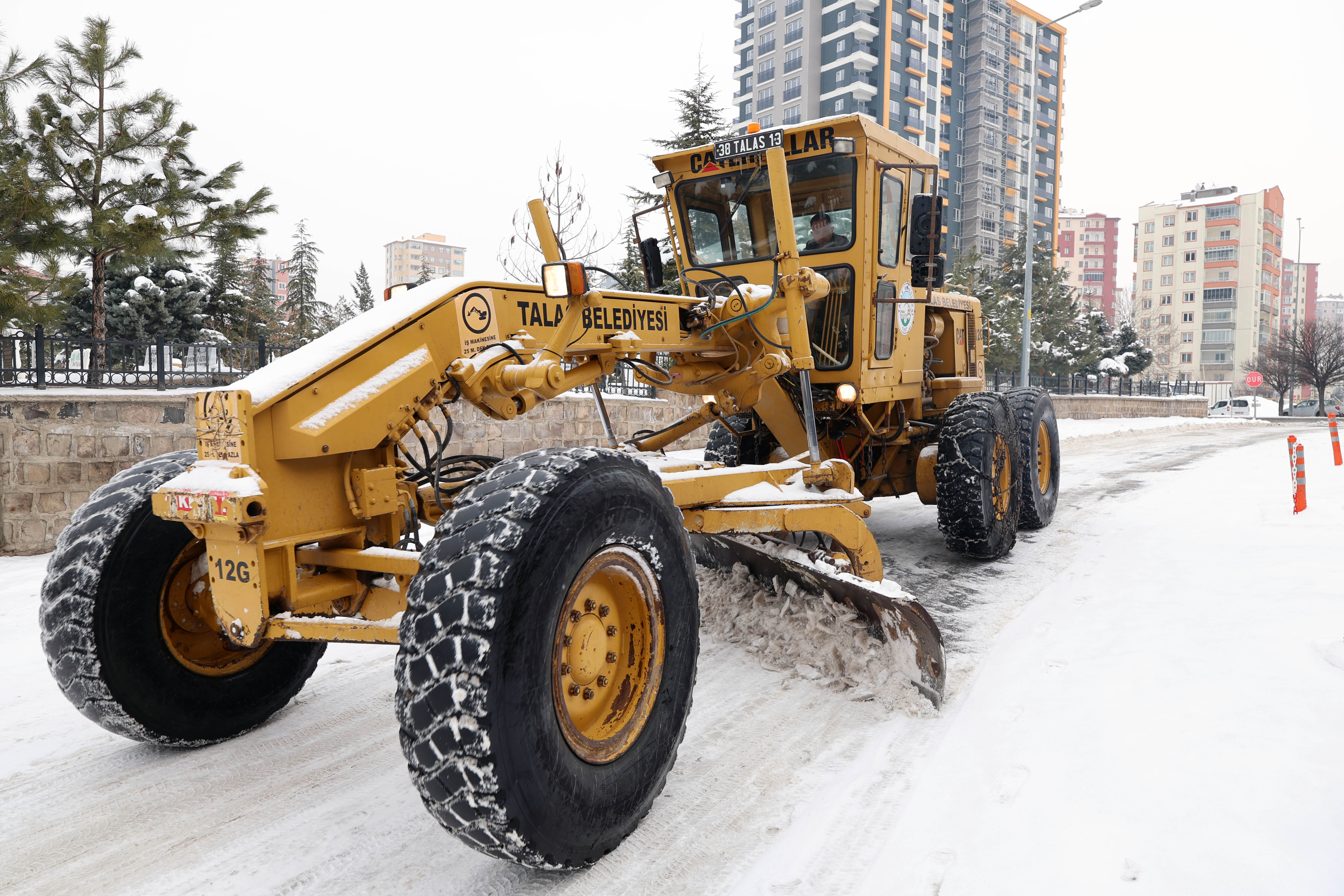 Talas Belediyesi’nin kış çalışmaları kapsamında 6 bıçaklı tuzlama kamyonu, 2 greyder, 5 kepçe, 6 traktör, 3 büyük kepçe, 4 mini kepçe, 2 kontrol aracı ve 2 elle tuzlama aracı ilçe merkezi ve kırsal mahallelerde görev yapıyor.