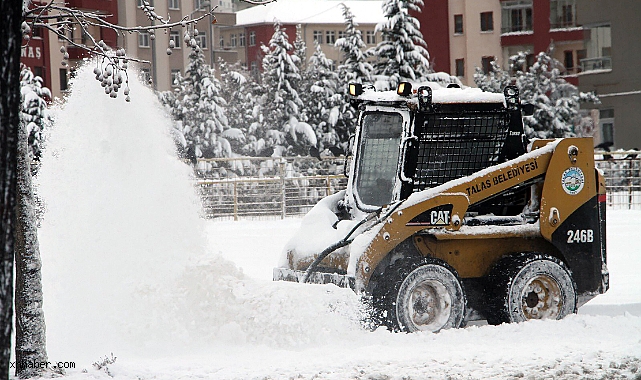 Talas Belediyesi, kış çalışmalarını 6 bıçaklı tuzlama kamyonu, 2 greyder, 5 kepçe, 6 traktör, 3 büyük kepçe, 4 mini kepçe, 2 kontrol aracı ve 2 elle tuzlama aracıyla sürdürüyor. İlçe merkezi ve kırsal mahallelerde vatandaşların ulaşımda sıkıntı yaşamamaları için 90 kişilik bir ekip gece gündüz nöbet tutuyor.