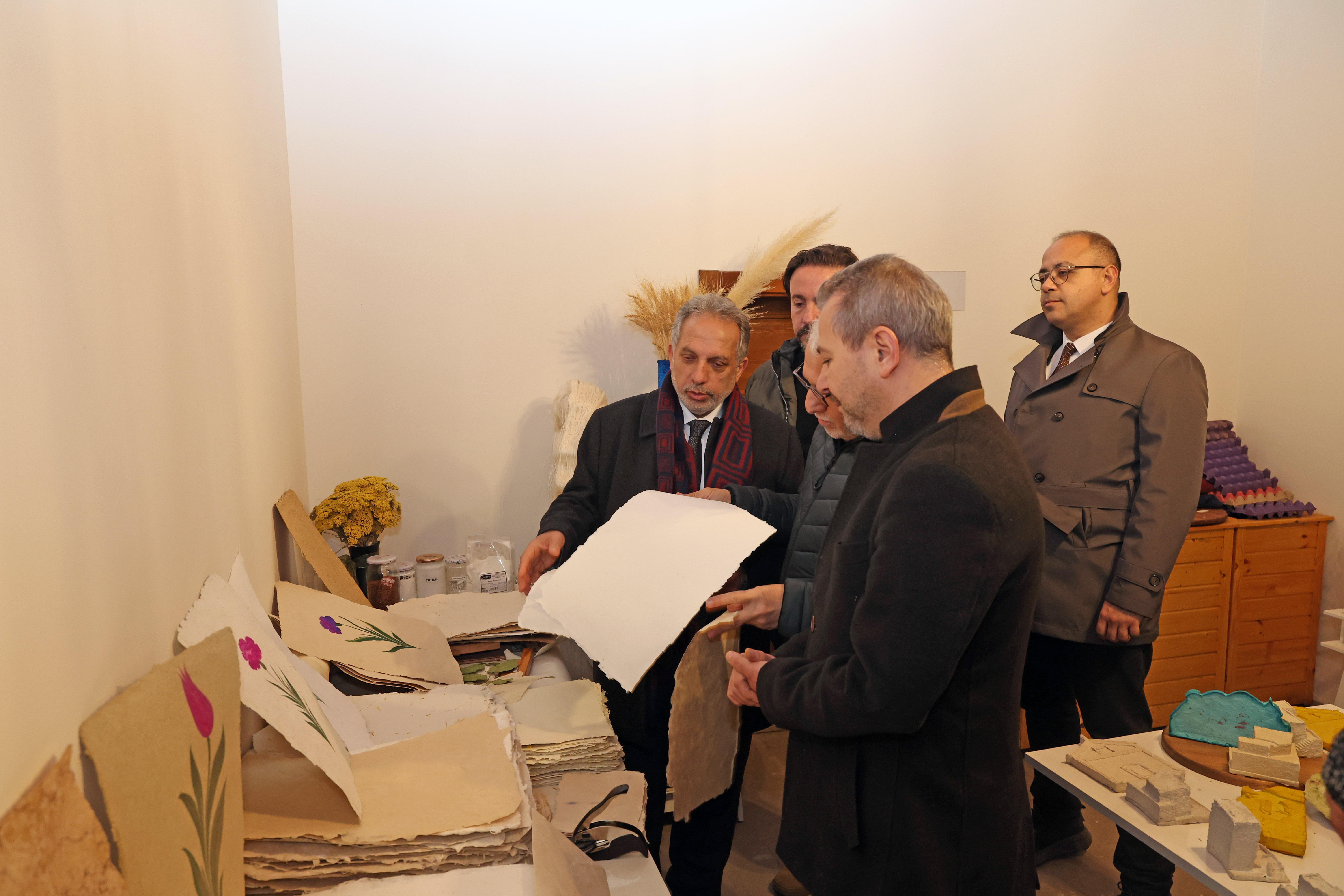 “Küratör Ahmet Taner Özer, başkan yardımcımız ve birim müdürlerimizle birlikte Osmanlı Kültür Sokağı’ndaki Klasik Sanatlar Akademisi, Kağıt Atölyesi ve Musiki Cemiyeti’ni gezerek yürütülen çalışmalar hakkında bilgi aldık. Yeni projeleri ele aldık, yapılan emek dolu üretimleri gördük. Emeği geçen herkese teşekkür ediyor, başarılar diliyorum.”