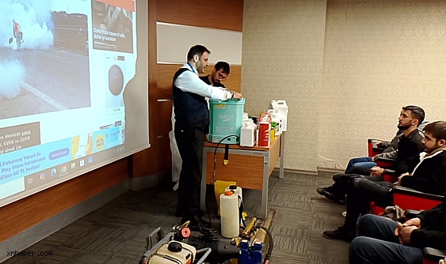 İl Sağlık Müdürlüğü koordinasyonunda düzenlenen Biyosidal Ürün Uygulayıcı Sertifika Eğitimi’nde Talas Belediyesi Veteriner İşleri Müdürlüğü, katılımcılara sahada yürütülen vektörle mücadele uygulamalarını anlattı. Eğitimde dezenfeksiyon çalışmaları, larva ve haşere kontrol yöntemleri, kullanılan ekipmanlar ve uygulama planlaması ayrıntılı şekilde paylaşıldı.