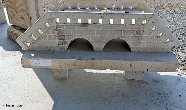 Bir diğer dikkat çeken eser olan taştan minyatür köprü modeli ise tarihi köprü mimarisini küçük ölçekte gerçeğe en yakın haliyle yansıtıyor. Kemer yapısı, taş dizilimi ve korkuluk detayları, kursiyerlerin kısa sürede kat ettiği mesafeyi gözler önüne seriyor.