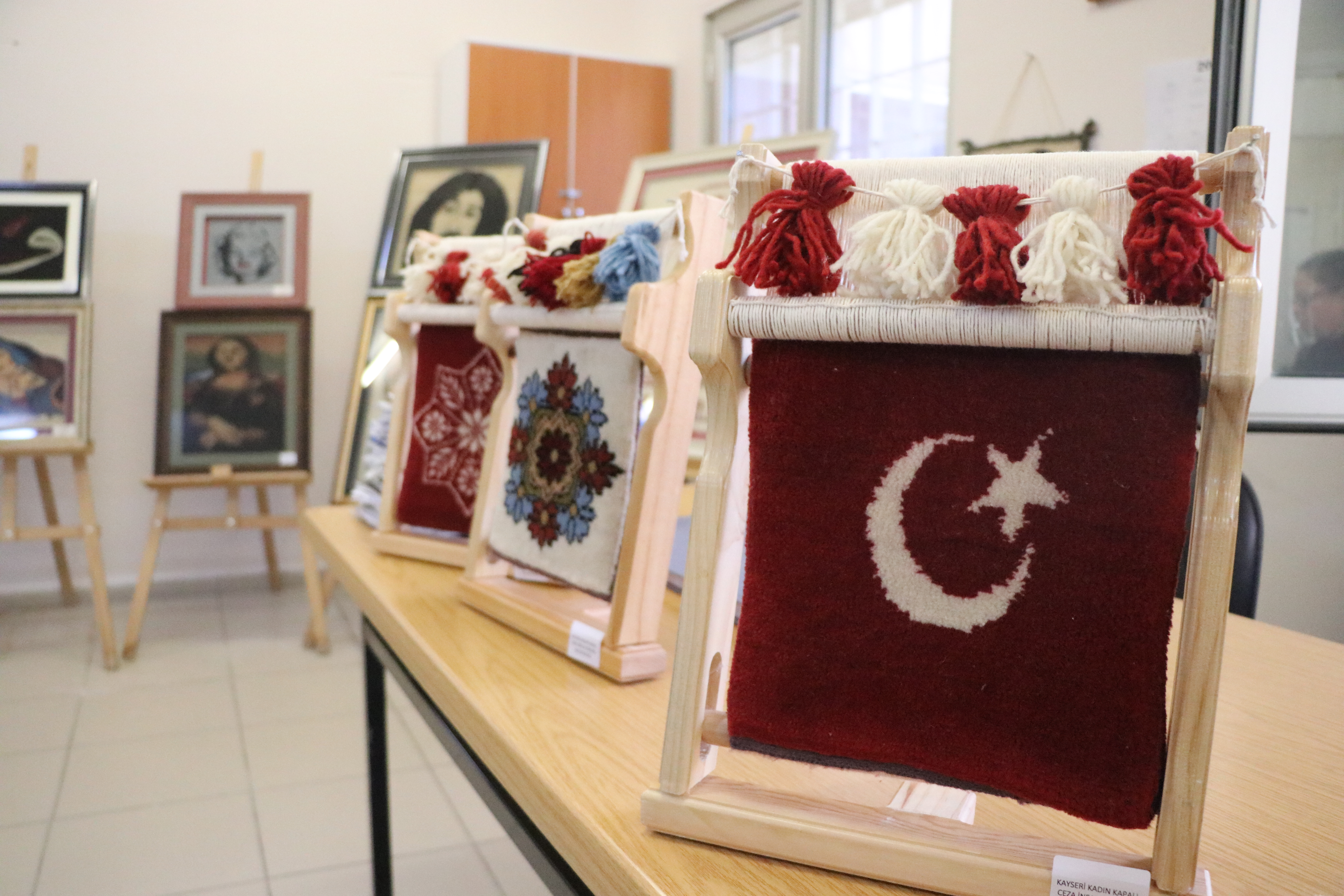 ‘SABIRLA DOKUMALARINI YAPIYORLAR’Kayseri Kadın Kapalı Ceza İnfaz Kurumu Kurs öğreticilerinden Nazime Özcan, "Ceza ve Tevkifevleri Genel Müdürlüğü olarak misyonu insan haklarına saygılı olarak cezanın infaz edilmesi, suçlunun yeniden topluma kazandırılmasını ve sosyalleşmesini teşvik etmektir. Bu amaçla Kayseri Kadın Kapalı Ceza İnfaz Kurumu’nda hükümlü ve tutukluların ıslahı için çeşitli kurslar açılmaktadır. Bunlardan bir tanesi de unutulmaya yüz tutmuş el sanatlarından biri olan 'Bünyan Halı Dokuma' kursudur. Kursumuz ilk olarak 2021 yılında açıldı. Bugüne kadar 204 kursiyer bu kursu başarıyla tamamlamıştır. Bünyan halıcılığının kökeni Orta Asya’ya dayanmaktadır.