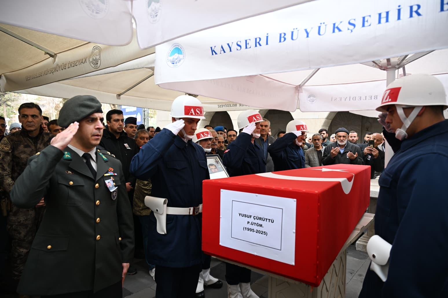 Mardin’in Nusaybin ilçesine bağlı Çölova Mahallesi’nde meydana gelen trafik kazasında yaşamını yitiren Üsteğmen Yusuf Çürüttü, Kayseri’de son yolculuğuna uğurlandı.