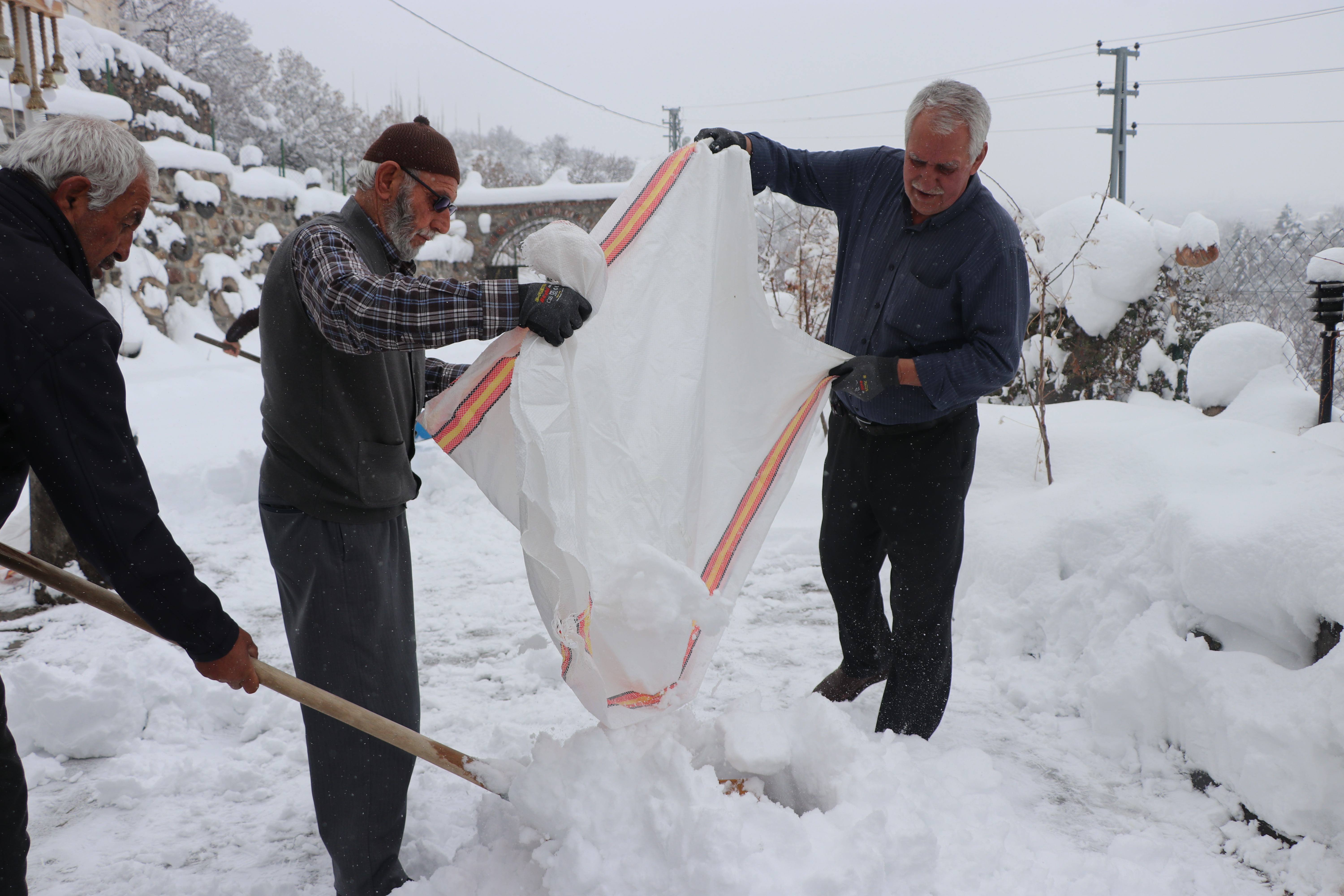 ‘BU GELENEĞİ SÜRDÜRMEK HARİKA BİR DUYGU’Kuyuları yaz için doldurduklarını belirten Ahmet Gengeç (67) ise "Bu sürdürdüğümüz geleneği atalarımızdan devraldık. 500 yıl arasında da tam net tarihini bilmiyoruz. Bu geleneği sürdürüyoruz. Bu geleneği sürdürmek harika bir duygu. Arkadaşlar ile toplanıp imece usulü gibi kar kuyularını doldururuz. Yaz için yapıyoruz. Eskiden atalarımız 'oğlum yazın karı kışın karı' derdi. Kışın karı koyduğumuz için yazında kar olur derdi. Ağaçlarımıza, yemeklerimize her şeyimize kullanılır bu kar. Mükemmel çayı olur. Arkadaşlar pekmez ile de yer. Çayına hiç doyum olmaz o kadar güzel çayı olur. Gelecek nesillere aktarmak konusunda endişemiz kesin. Gençler bu işi yapacak gibi değiller ama biz ölene kadar devam edeceğiz. Bırakmayacağız. İlçede tahminimce en az 1000-1500 kar kuyusu vardır. 2 bin belki vardır ama bin 500’üne yakını sağlam. Yoruluruz, ama yorulduğumuzu hiç aramayız. Mükemmel bir duygu. Zevkli bir şey bu. Bu sene güzel bir kar oldu. Eski karımızdan daha güzel. Süt gibi. Böyle de kar hiç yağmamıştı” dedi