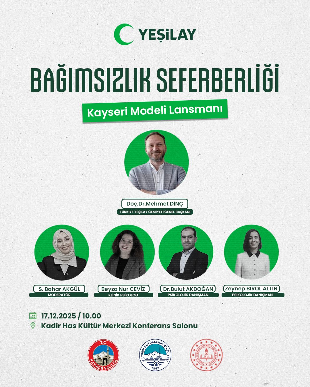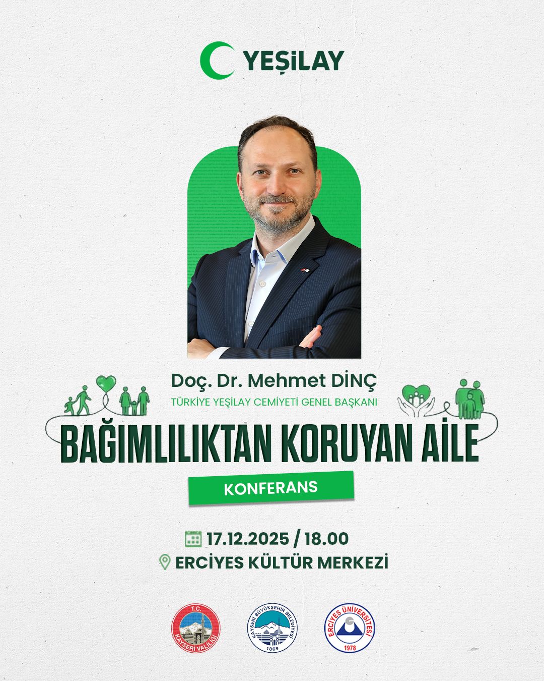 Kayseri Valiliği, Kayseri Büyükşehir Belediyesi ve Kayseri Yeşilay Şubesi’nin ortaklığıyla, bağımlılıkla mücadele alanında farkındalık oluşturmayı hedefleyen iki önemli etkinlik düzenleniyor. Toplumun her kesimine ulaşmayı amaçlayan programlara, Yeşilay Genel Başkanı Doç. Dr. Mehmet Dinç de katılarak destek verecek.